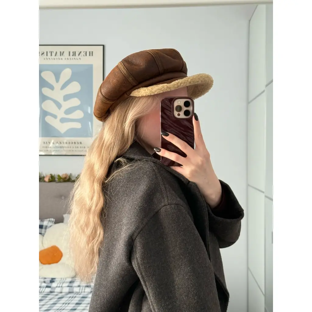 Винтажная кепи Dior 2005 год, подиумная. Выполнена из кожи, материал как дубленка. Сзади металлический логотип. Размер 55, садится плотно, на голове держится. Не тянется, внутри меховая отделка, очень тепло зимой.