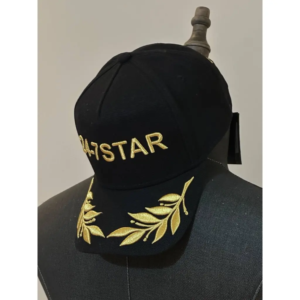 Акцентный аксессуар из плотного черного хлопка. Бейсболка украшена вышитой золотистыми нитями надписью «Shine», которая эффектно рифмуется с лавровым венком на козырьке и фирменным логотипом сзади. который притягивает взгляды !В реальной жизни смотрится невероятно стильно и дорого.