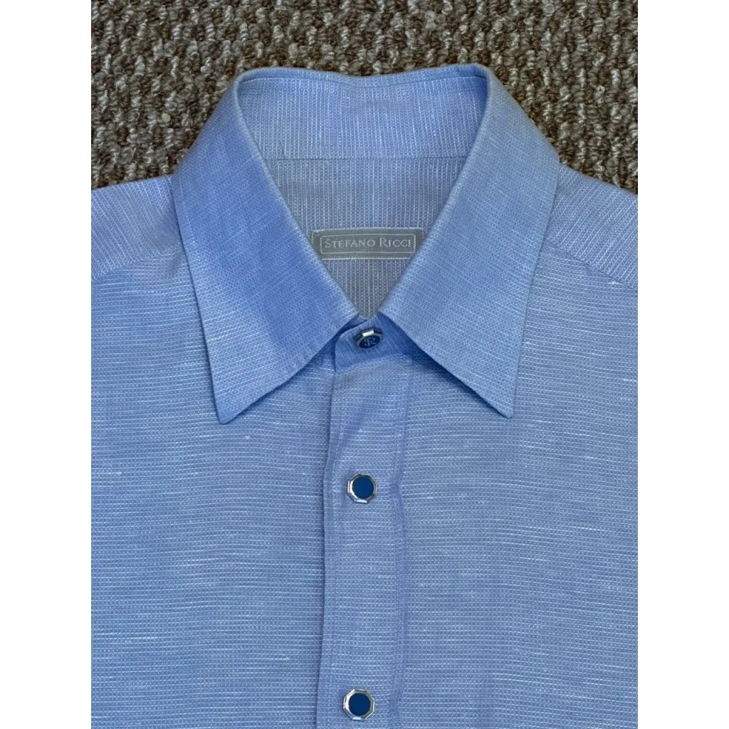 STEFANO RICCI Голубая хлопковая кэжуал рубашка