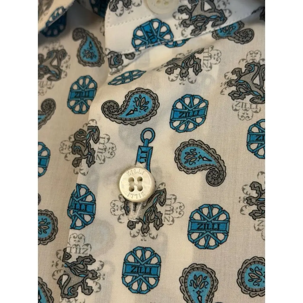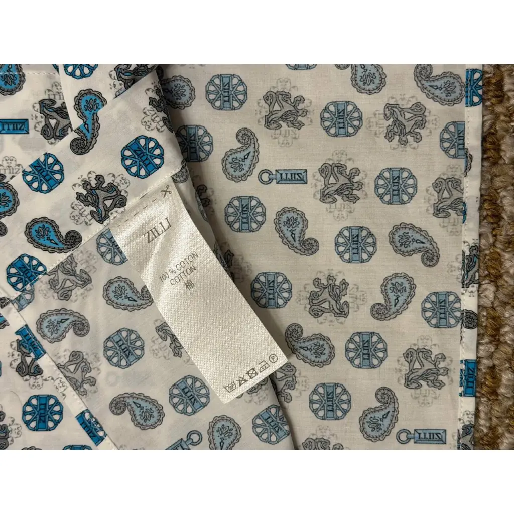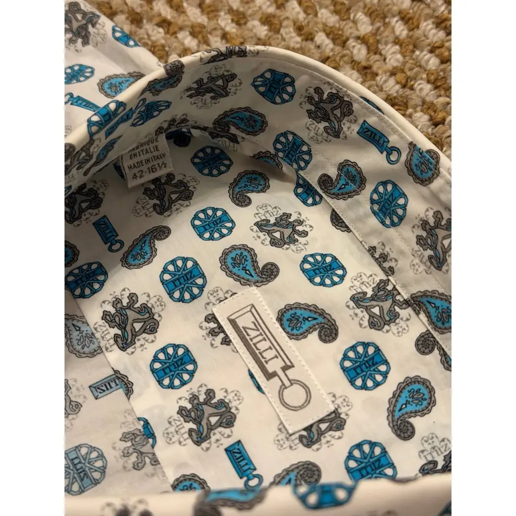 СМОТРИТСЯ КЛАССНО ПО ВСЕЙ РУБАШКЕ НАДПИСИ ZILLI И ЛОГОТИП БРЕНДА ГРИФОН