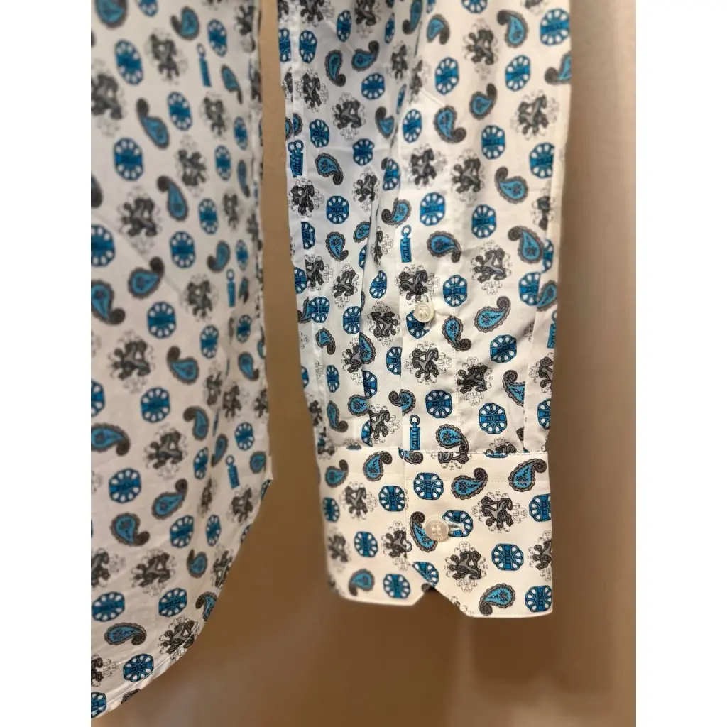 коллекцию сезона весна-лето вошла светлая сорочка с серо-голубым паттерном пейсли.