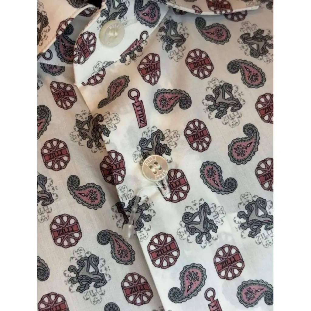 В реале смотрится очень классно по всей рубашки надписи Zilli и логотип бренда Грифон