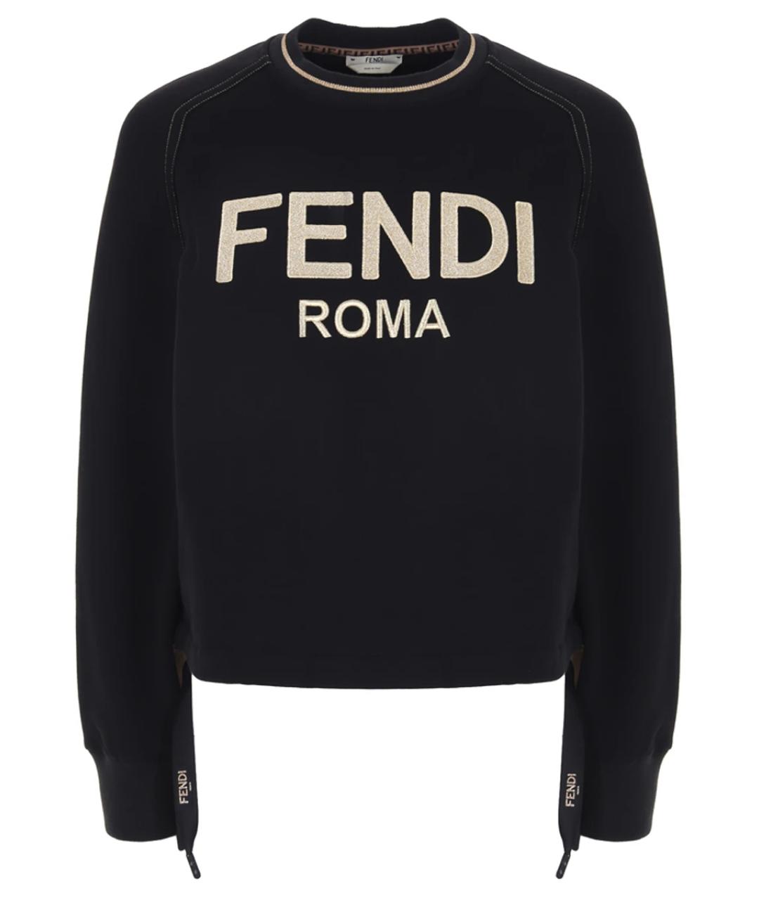 -Черная толстовка из плотного хлопка от FENDI. -Свободный силуэт, длинные рукава-реглан, эластичные манжеты, круглый вырез горловины, логотип на груди. .