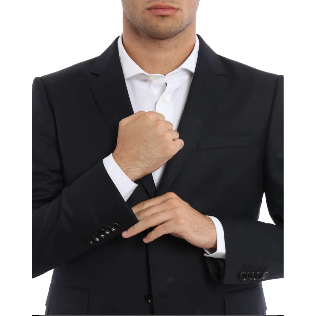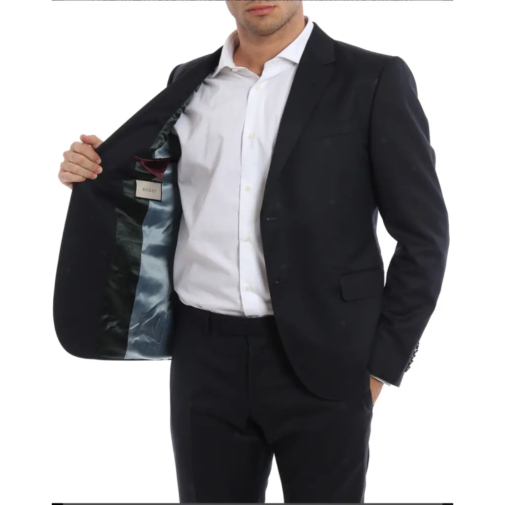 Gucci Men Bee Heart Tone Wool Suit Navy
