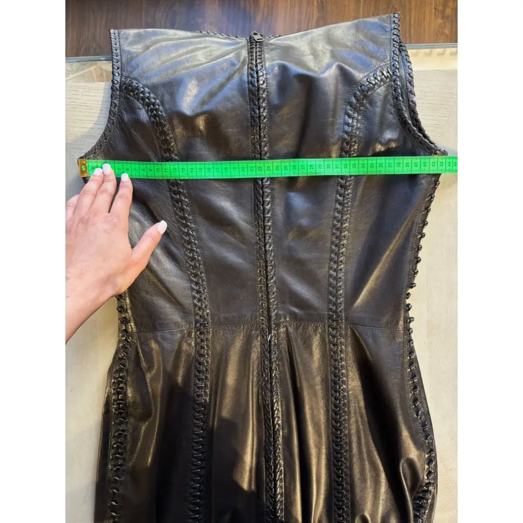 ALEXANDER MCQUEEN Черное кожаное коктейльное платье