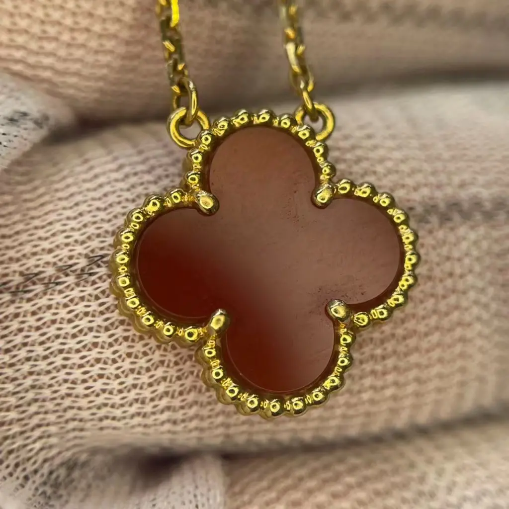 Vintage Alhambra Medium Single Flower Necklace New Buckle 18K gold/Carnelian Necklace Gold 41.5 cm • Доставка за 10-15 рабочих дней • Если у вас есть вопросы, воспользуйтесь кнопкой «Написать продавцу» — мы с радостью ответим!