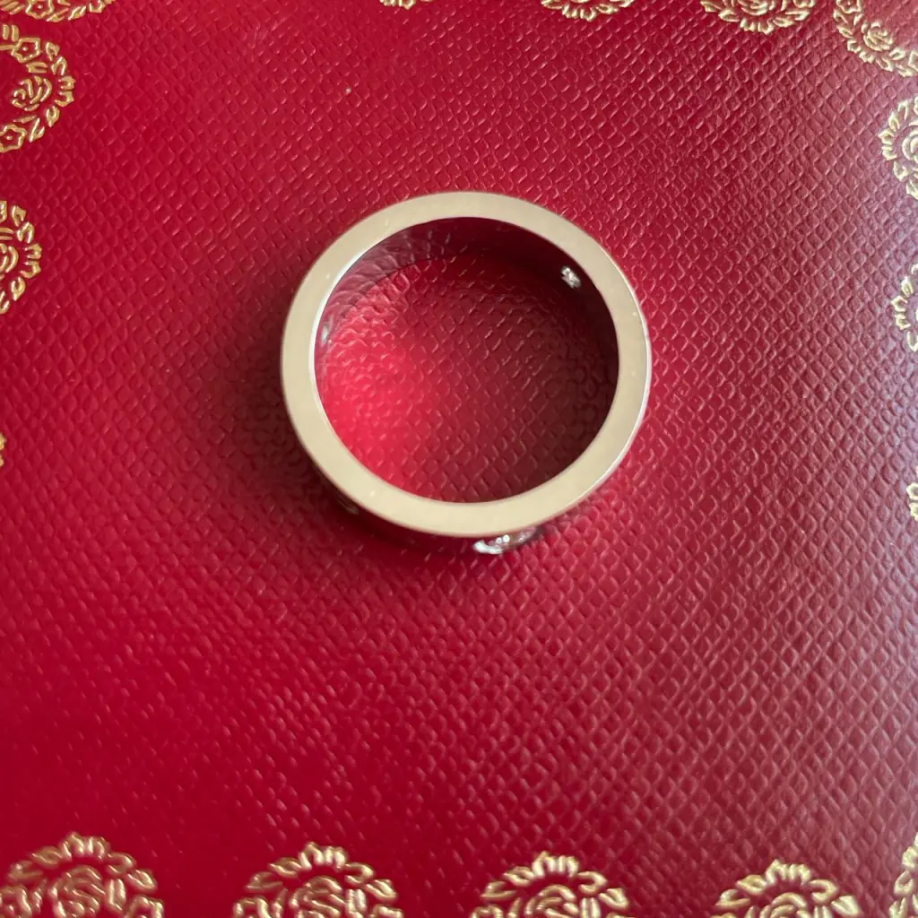 новое, кольцо ни разу не выходило, но примерялось, есть маленькая царапка, видна под определенным углом, не глубокая