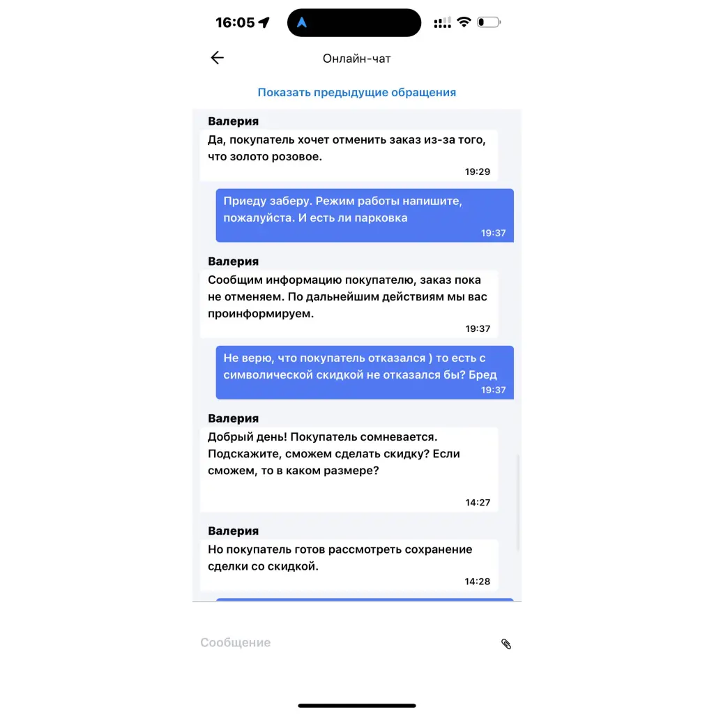 @Natagold здравствуйте, если вам не устраивает, что я указала, что кольцо из желтого золота, но на самом деле оно из розового золота (я этого не знала, не разбираюсь в оттенках, золото и золото), то откажитесь от сделки. На меня второй день давят, чтобы я отдала вам кольцо по сниженной цене. Этого не будет, я сделала максимальные скидки.