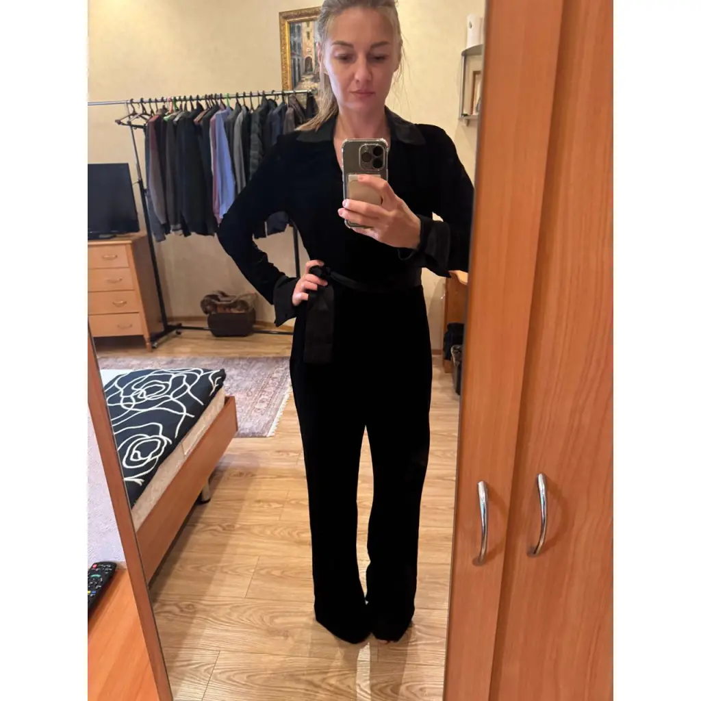 DIANE VON FURSTENBERG Черный бархатный комбинезон