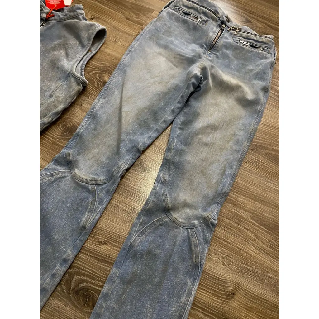 Джинсы выполнены в стиле мотобрюк. Можно носить с ремнем любой ширины.