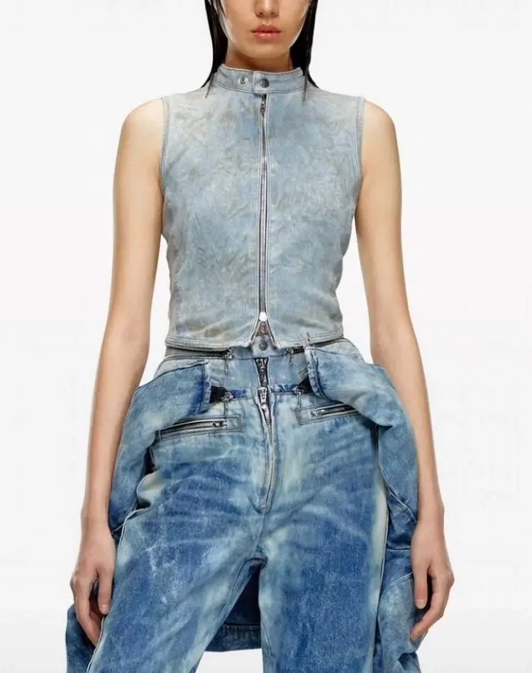 Главная фишка комбинезона , что его можно носить как вместе , так и по по раздельности , как топ- жилетку и джинсы отдельно. Можно носить джинсы и сверху не застегивая жилетку, или сочетать с другими вещами. ( все доп фото ниже в комментариях)