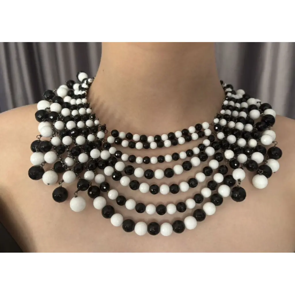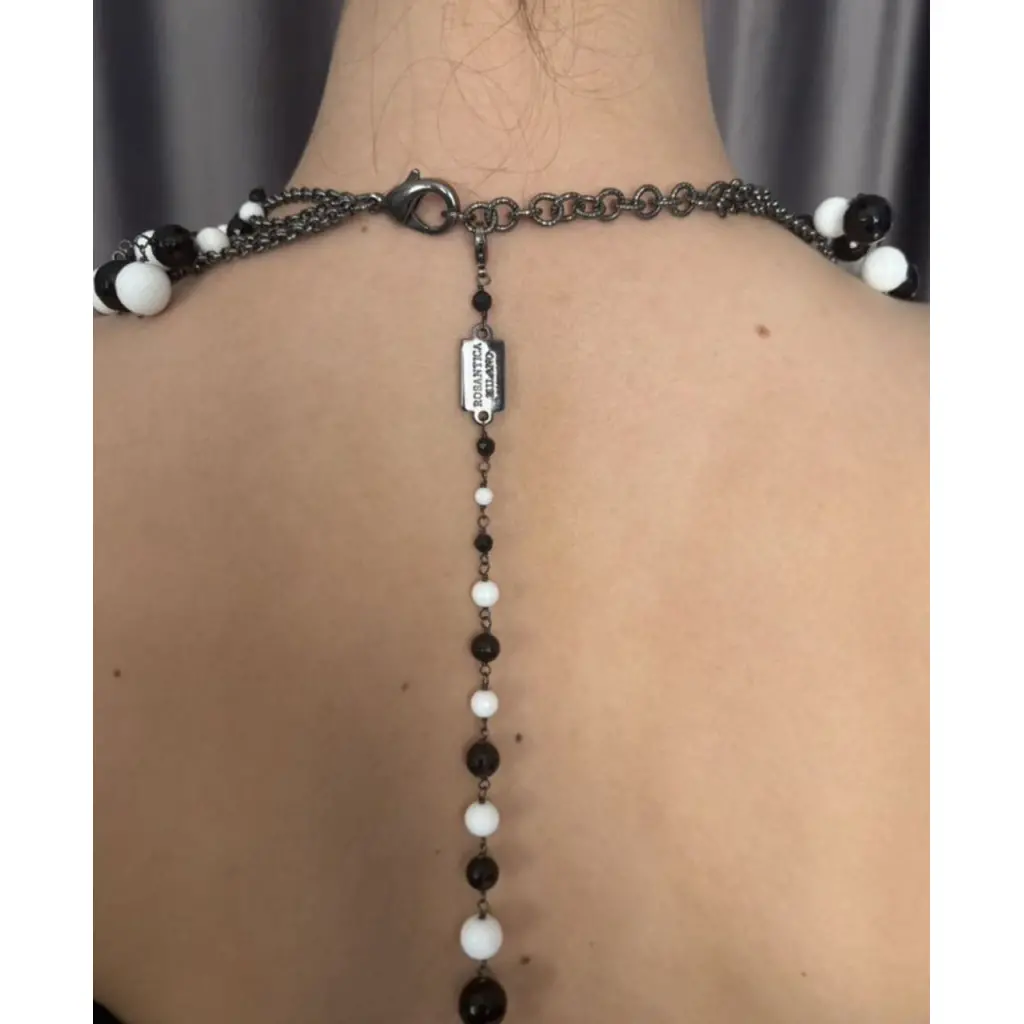 Чернобелый комплект колье с удлиняюшим элементом, который модно носить как самостоятельный браслет)