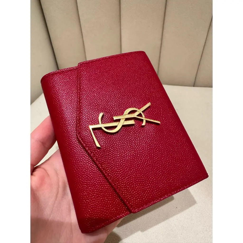 Женский кошелек Saint Laurent . Цвет бордовый. Коробка, все документы, пыльник есть. Есть царапины от носки. Использовала очень аккуратно. Есть отсеки для карточек, монет, купюр и даже для прав. Очень вместительный.