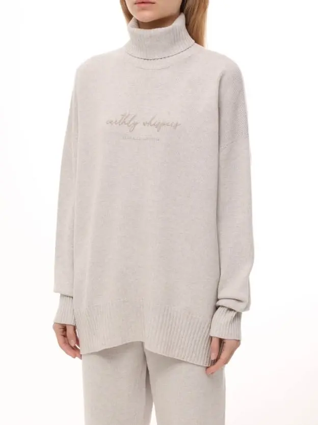 ⭐️Вышивка фразы Earthly Whispers, повторяющийся мотив коллекции, символизирует глубокую связь с корнями, объединяющую человека со своей землей. Это призыв проживать данную связь с нежностью, обходительностью и добром. Мягкий силуэт изделия соответствует пушистой и легкой текстуре ценной натуральной пряжи.