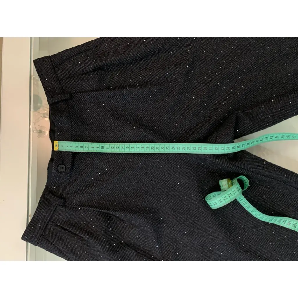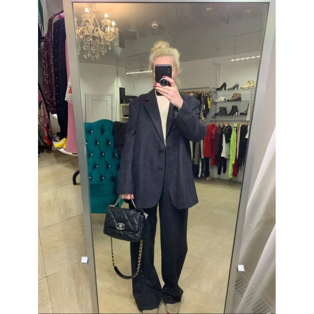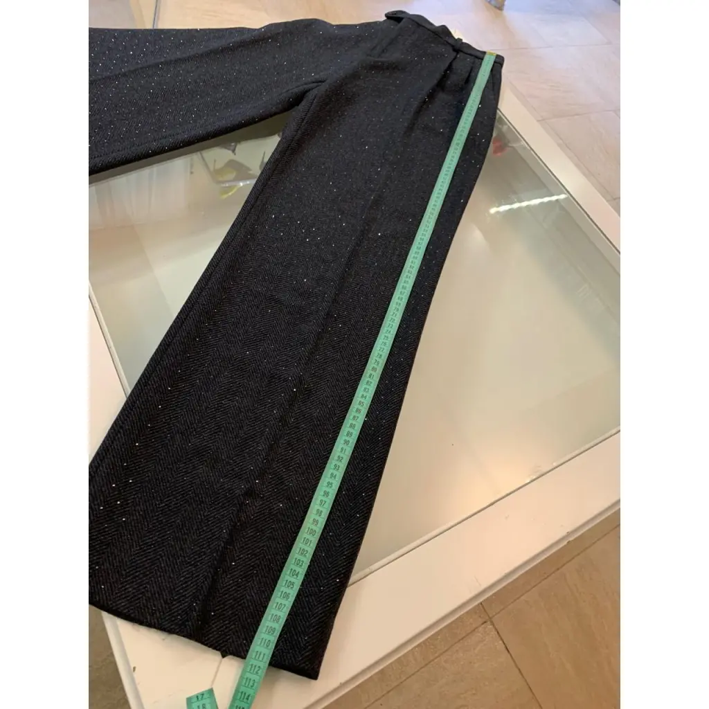 Костюм Sandro пиджак и брюки из шерстяной ткани темно-серого цвета с чёрными кристаллами. Состояние нового с бирками. Маркировка размера 42, замеры смотрите на фото в комментариях.