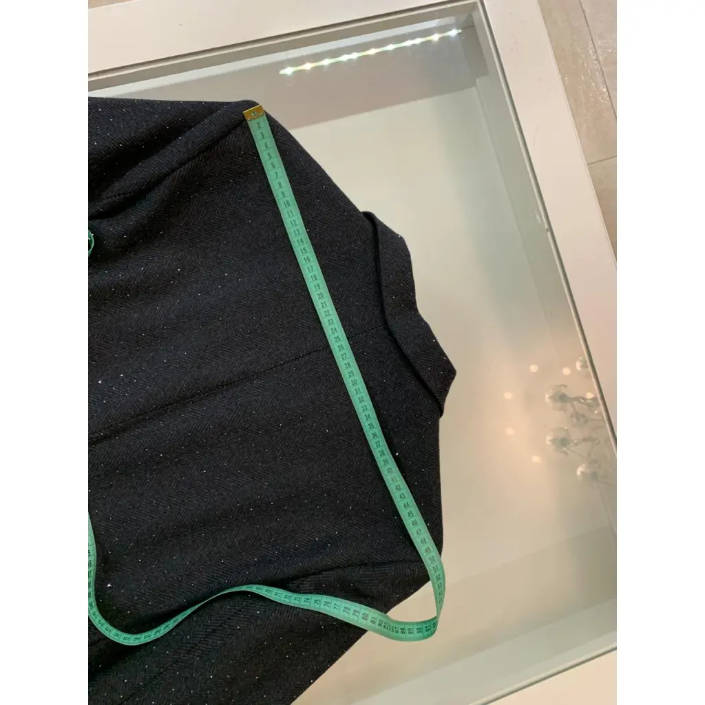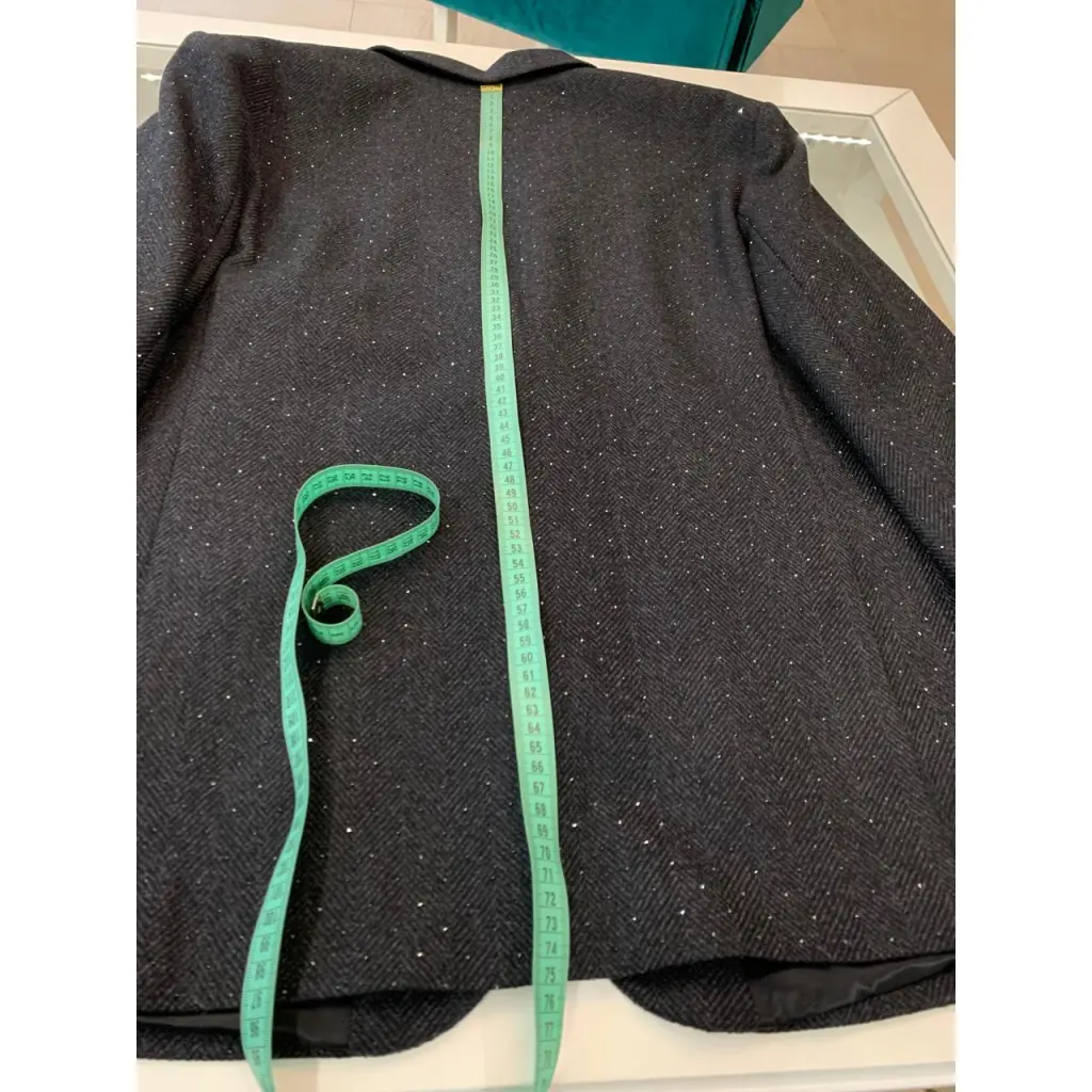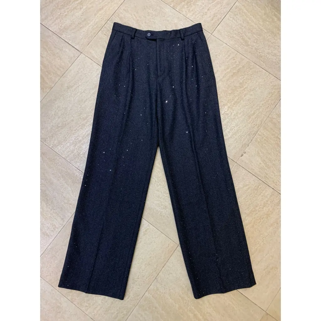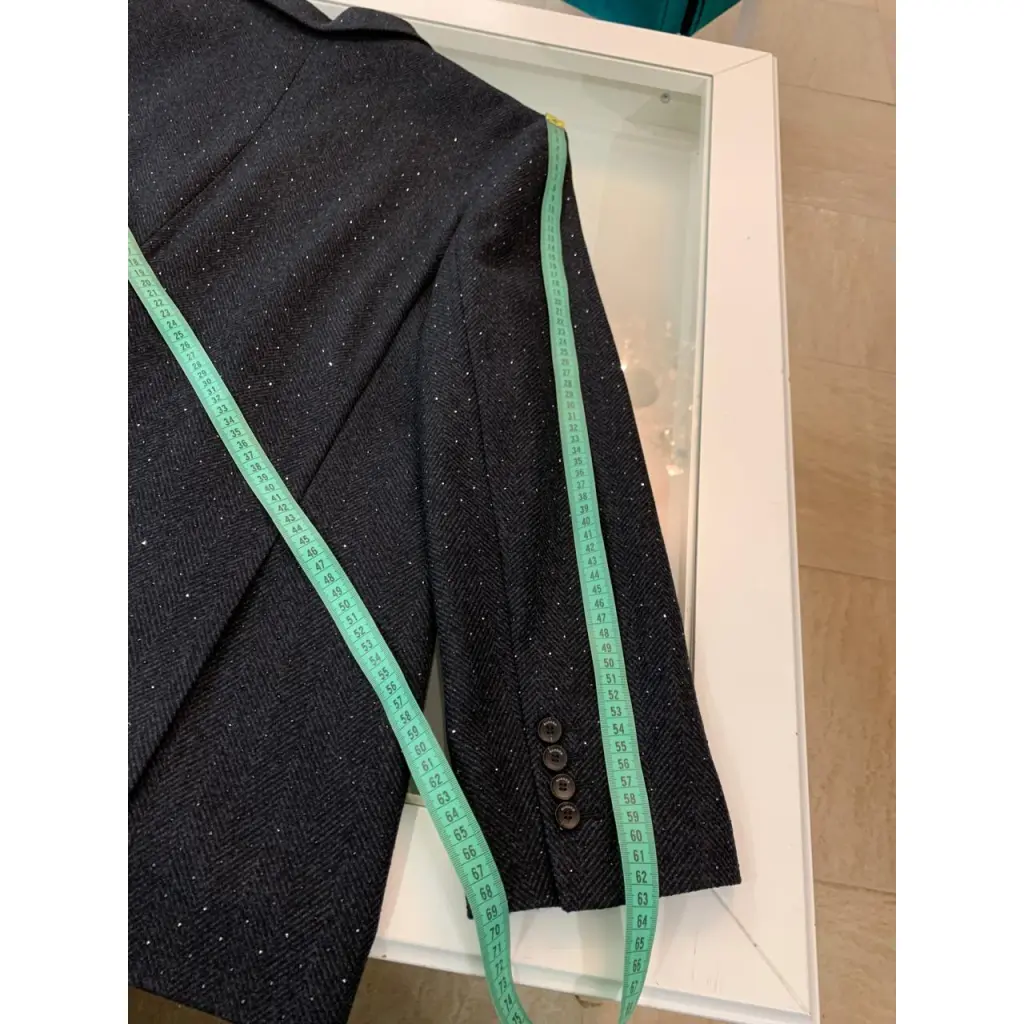 Костюм Sandro пиджак и брюки из шерстяной ткани темно-серого цвета с чёрными кристаллами. Состояние нового с бирками. Маркировка размера 42, замеры смотрите на фото в комментариях.