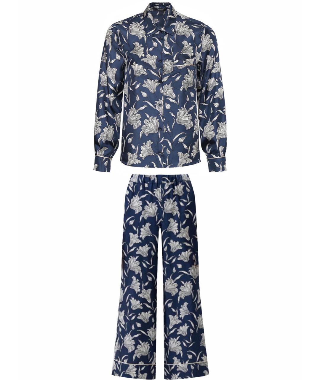 WEEKEND MAX MARA Темно-синий шелковый костюм с брюками