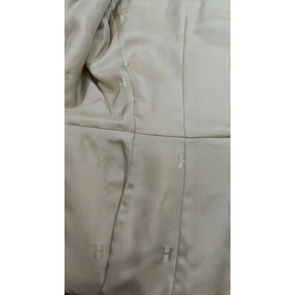Костюм Hermes. Размер FR 36. Отличное состояние: присутствуют микротрещинка на воротнике изнутри на куртке, затяжки на подкладе куртки, некритичные потертости на пряжке юбки.
