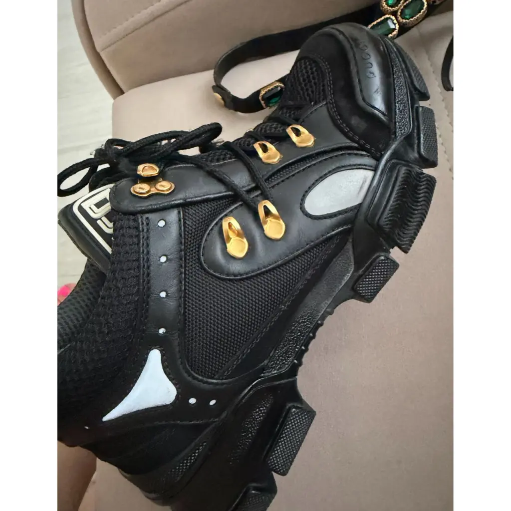 GUCCI Черные кожаные кроссовки