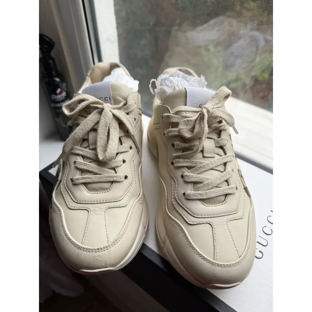 GUCCI Бежевые кожаные кроссовки