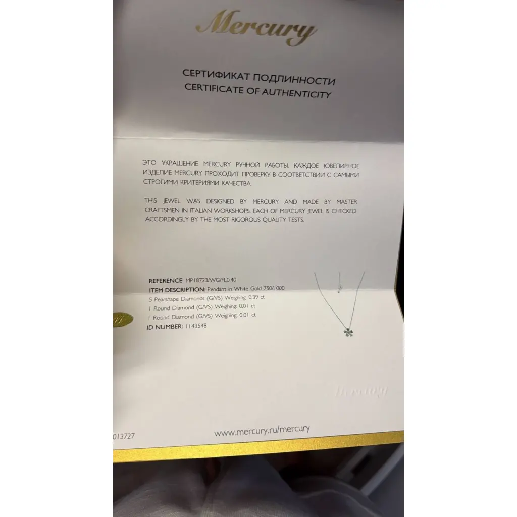MERCURY Кулон из белого золота