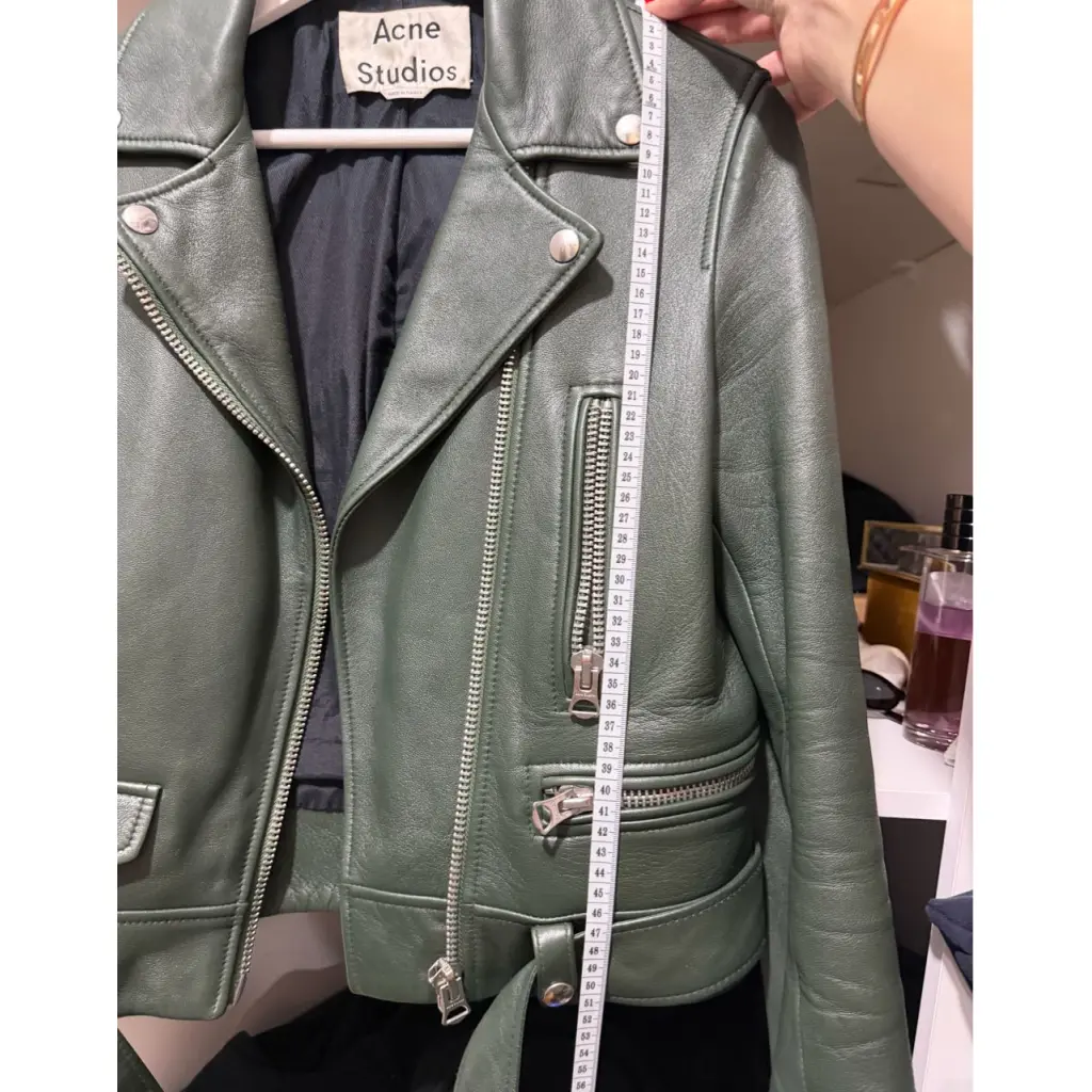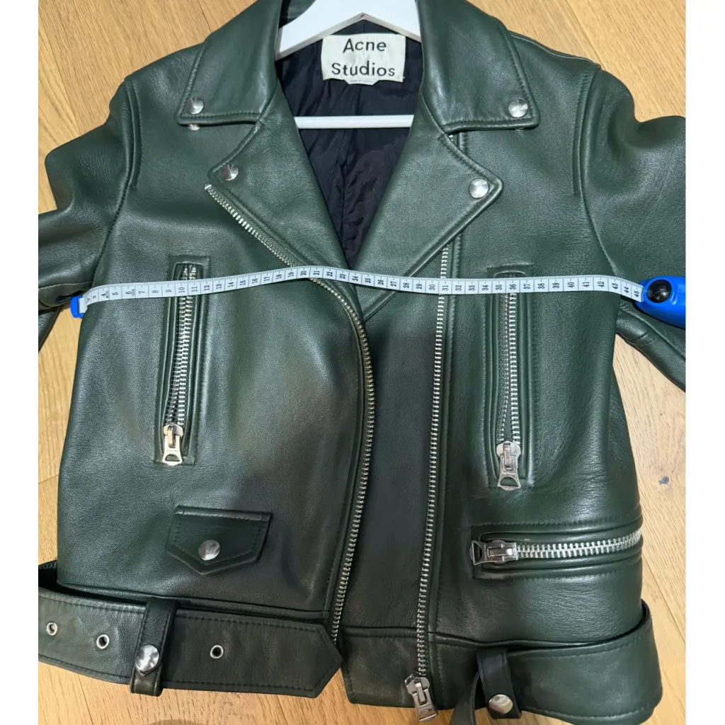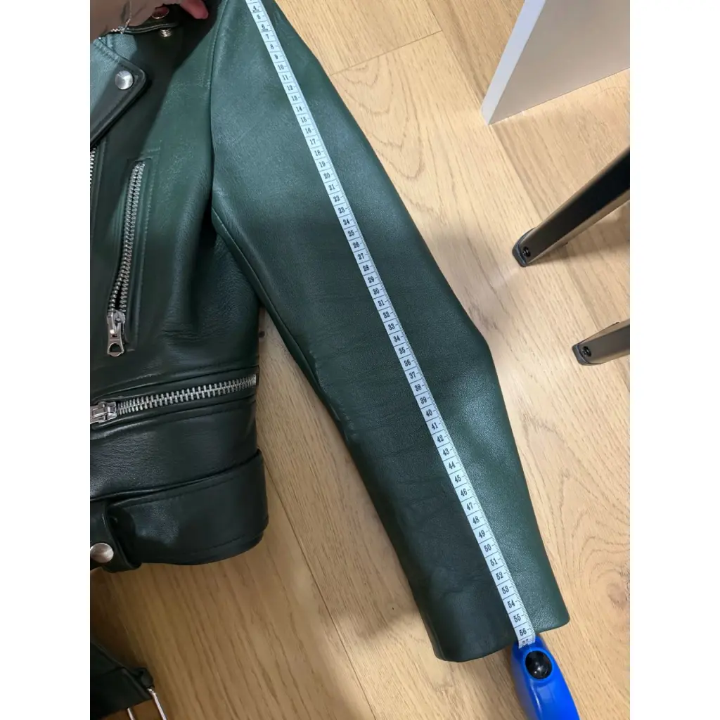Куртка кожаная в темно-зеленом цвете в отличном состоянии Размер 36 , подойдет на XS-S Состояние отличное Есть небольшая царапинка над карманом (не критично, в носке не заметно) и на замках следы носки (все фото приложены)