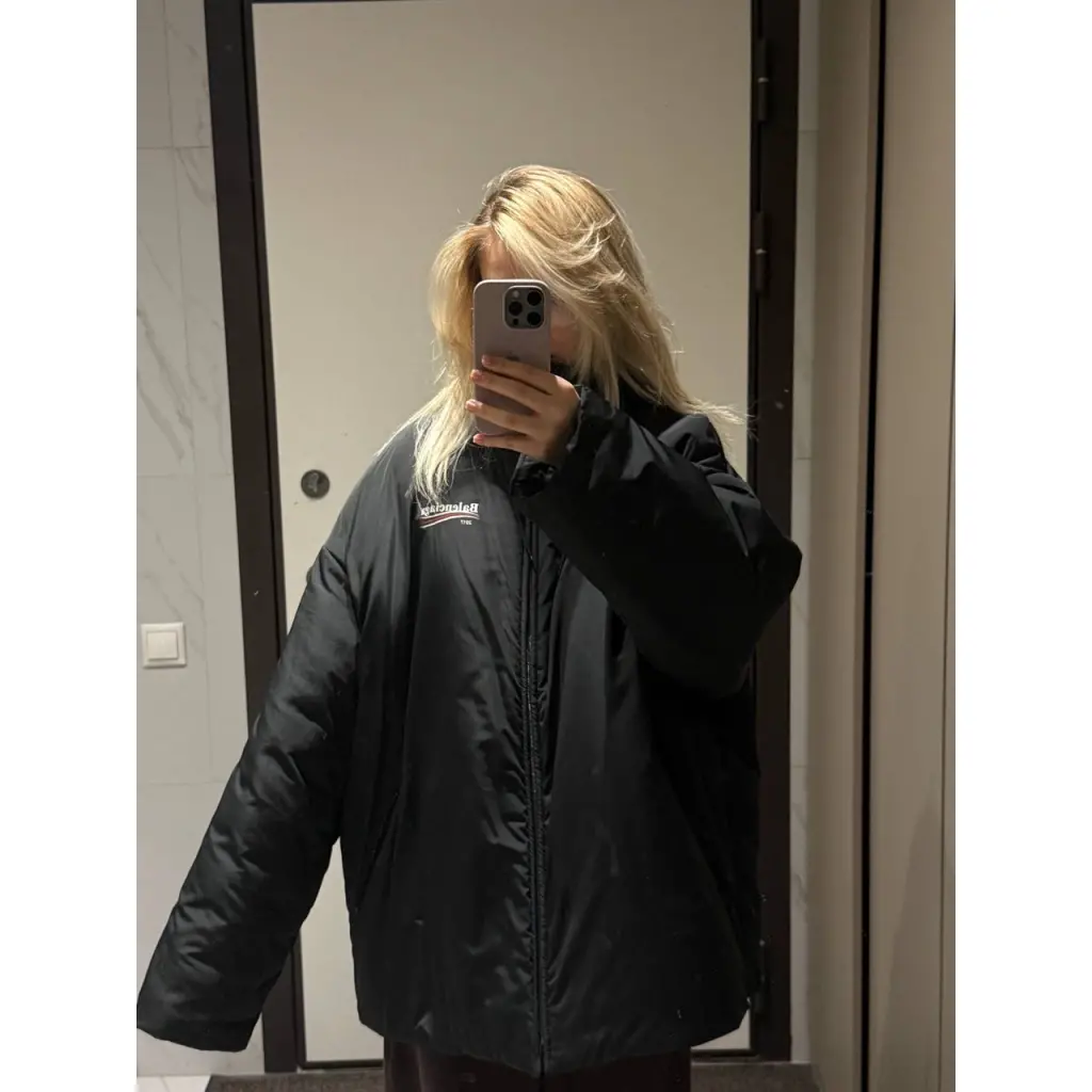 - Balenciaga political campaign logo puffer jacket