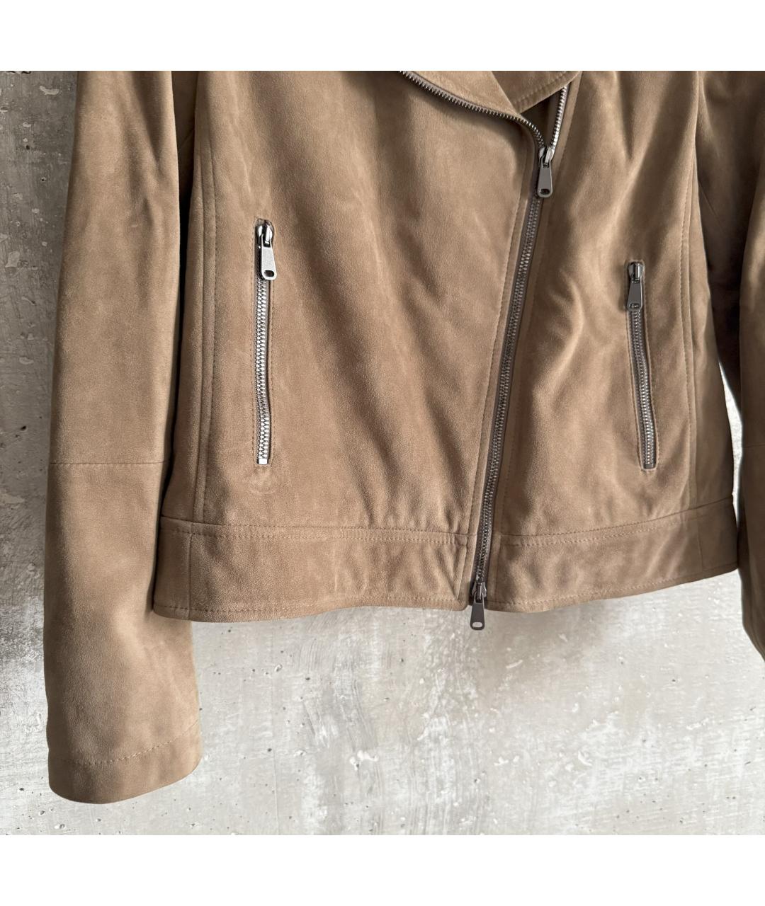 Женская бежево - песочная куртка косуха из натуральной замши Brunello Cucinelli Размер 40 Плечи 38 Рукав 56 Подмышки 44,5 Длина 54 Новая! С бирками и кофром Привезена из Германии 🇩🇪