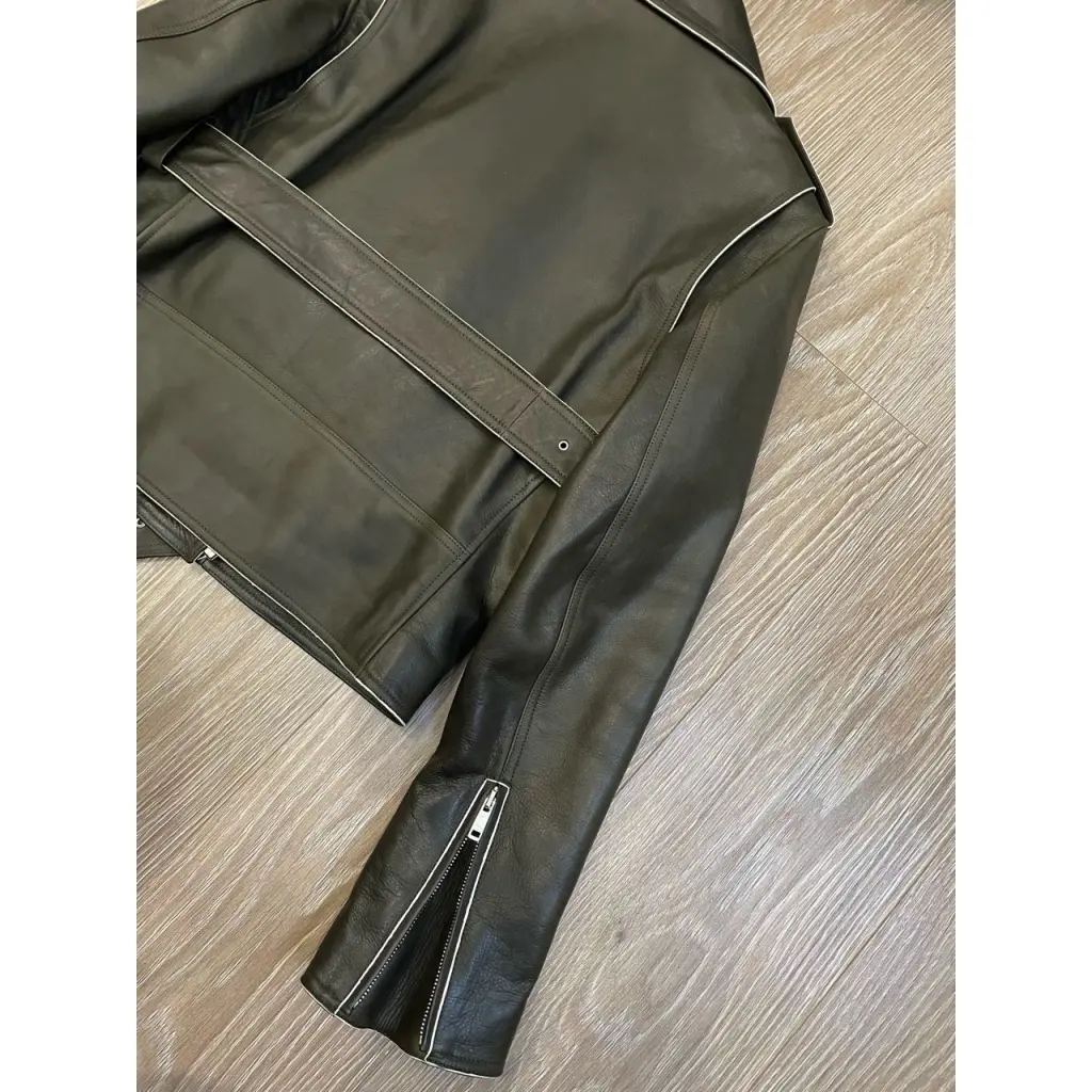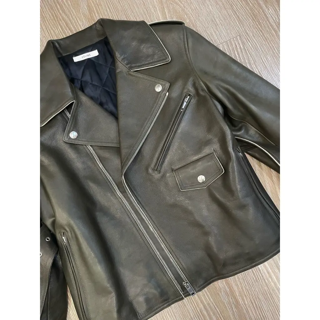 Шикарная куртка CELINE. Бутик $6.500. Очень редкая. Выполнена из плотной телячьей кожи высочайшего качества. Искусственные заломы, потертости. Гранж. Имеет 4 кармана. Цвет: хаки. Фурнитура гравирована. Размер: 40 (42-44 рос). Made in Italy