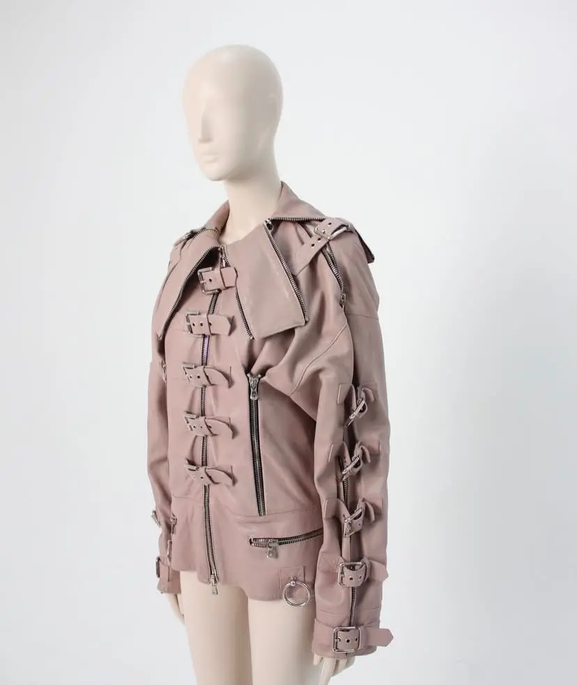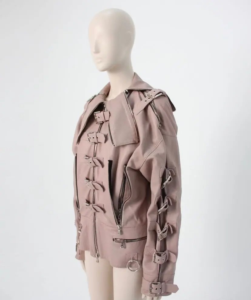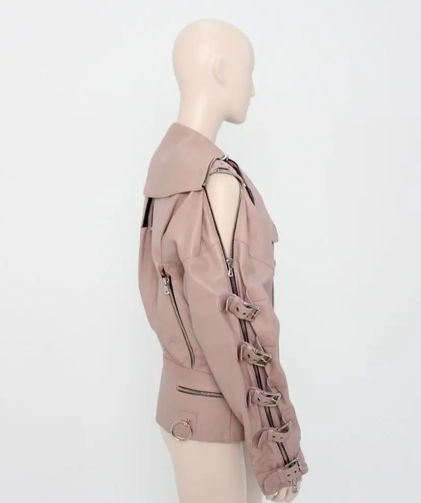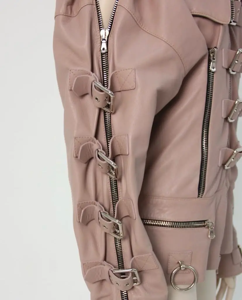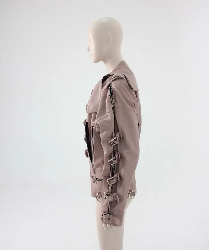 Dolce & Gabbana mauve leather buckled bondage jacket SS 2003