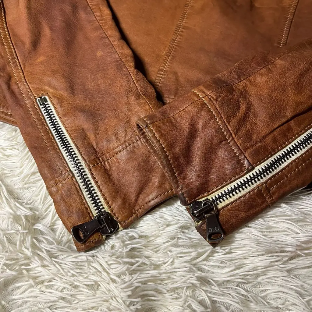 Кожаная куртка от D&G. Мягкая кожа ягненка, приятный цвет, акцентные белые молнии YKK, вещь в очень хорошем состоянии, небольшие потертости (это нормально для этого типа кожи).