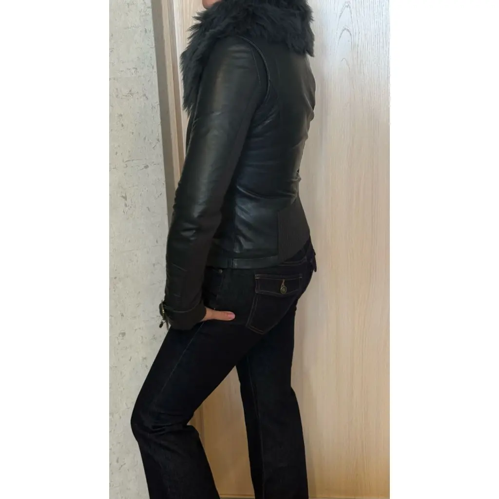 Куртка кожаная с натуральным мехом Elisabetta Franchi, застегивается на замок и 3 кнопки сверху если нужен высокий ворот, комбинирована с трикотажем и замша, эффективная модель