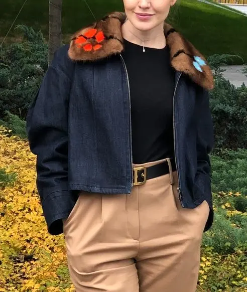 Очень интересная утепленная джинсовая куртка. С норковым воротником. Носилась, но не заношенная, потерялась одна пуговица для пристегивания воротника. Нюансы есть на фотографиях.