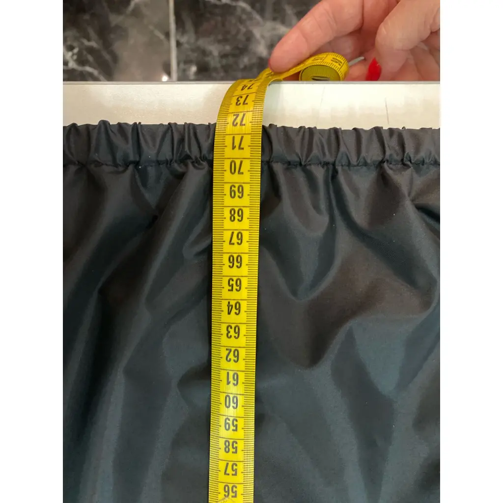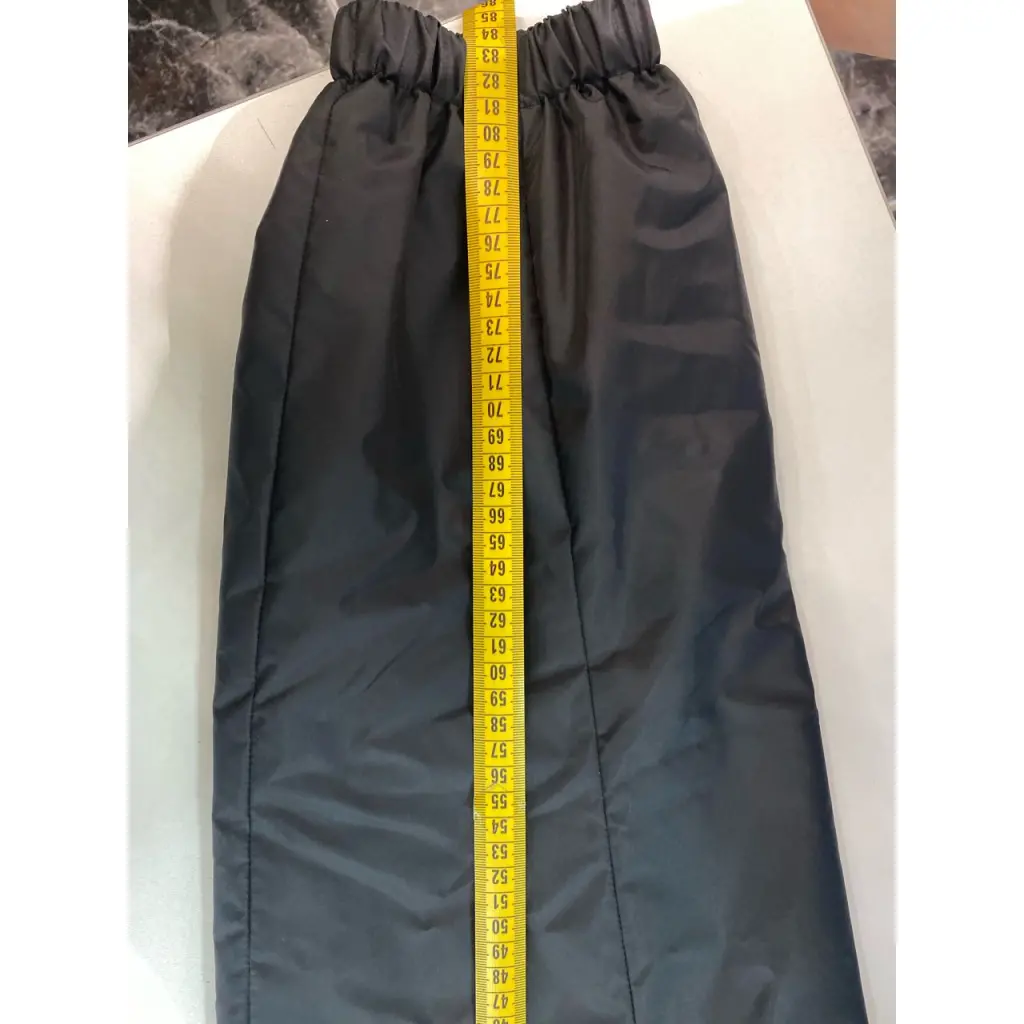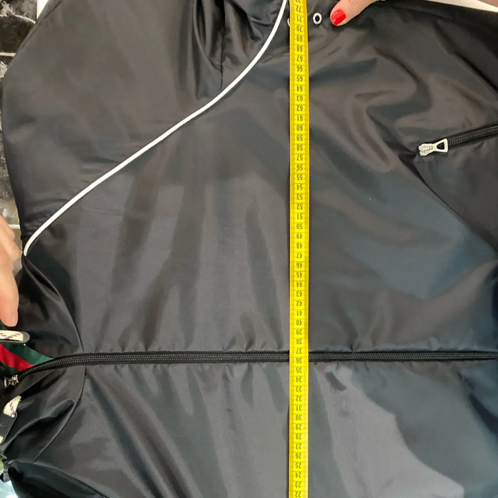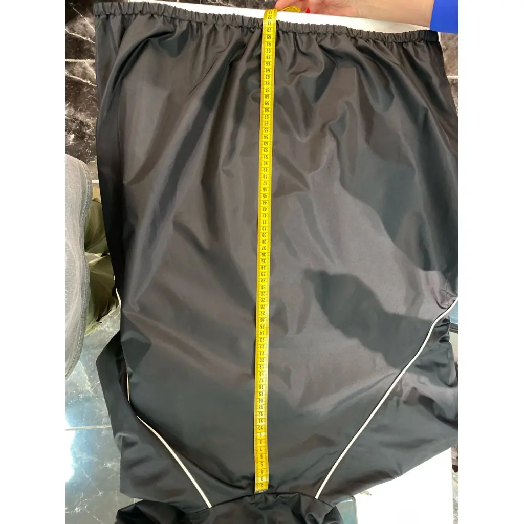 - Черный нейлоновый сатин, капюшон на шнурке, два боковых кармана на молнии, кожаные детали из телячьей кожи.
