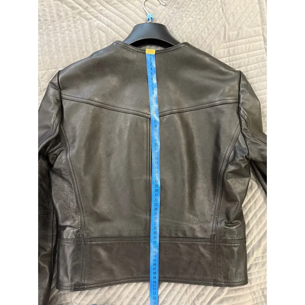 Куртка из плотной дорогой кожи, держит форму , накладные карманы , стильная модель на клепках , фурнитура в идеальном состоянии. Выходила пару раз , не прижилась в гардеробе , висит в шкафу несколько лет . В комплекте имеется чехол для хранения . Состояние идеальное , единственное , пожелтели бирки от времени