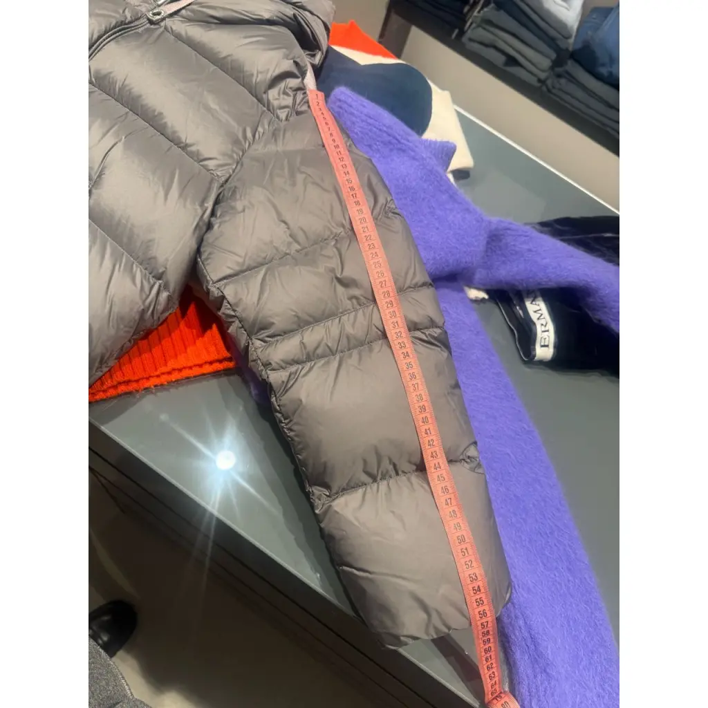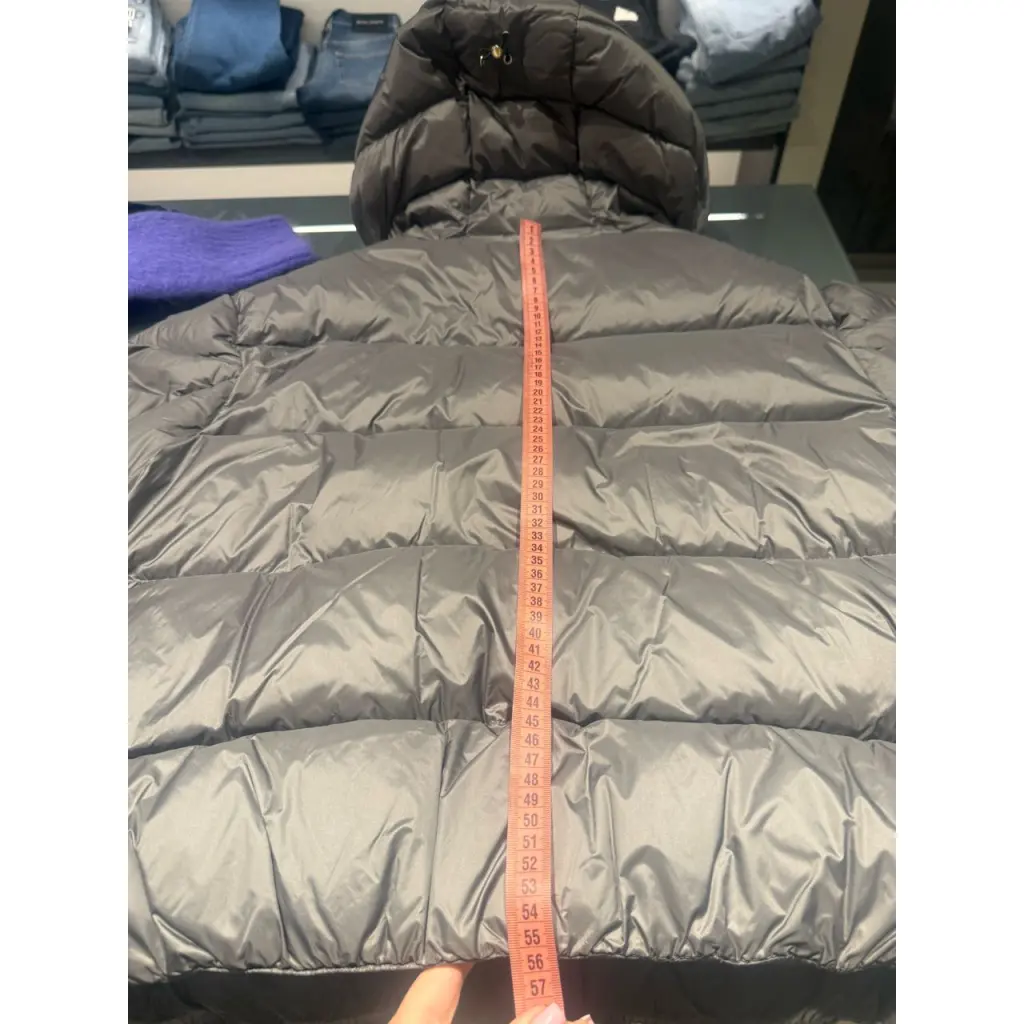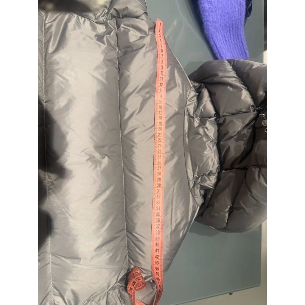 Серый однотонный пуховик с регулируемым капюшоном и двумя врезными карманами сшит из непромокаемого и непродуваемого нейлона с глянцевой поверхностью. Левый рукав украшен патчем с символикой марки. Объемная, но при этом легкая стеганая куртка, застегивающаяся молнией, утеплена отборным утиным пухом.