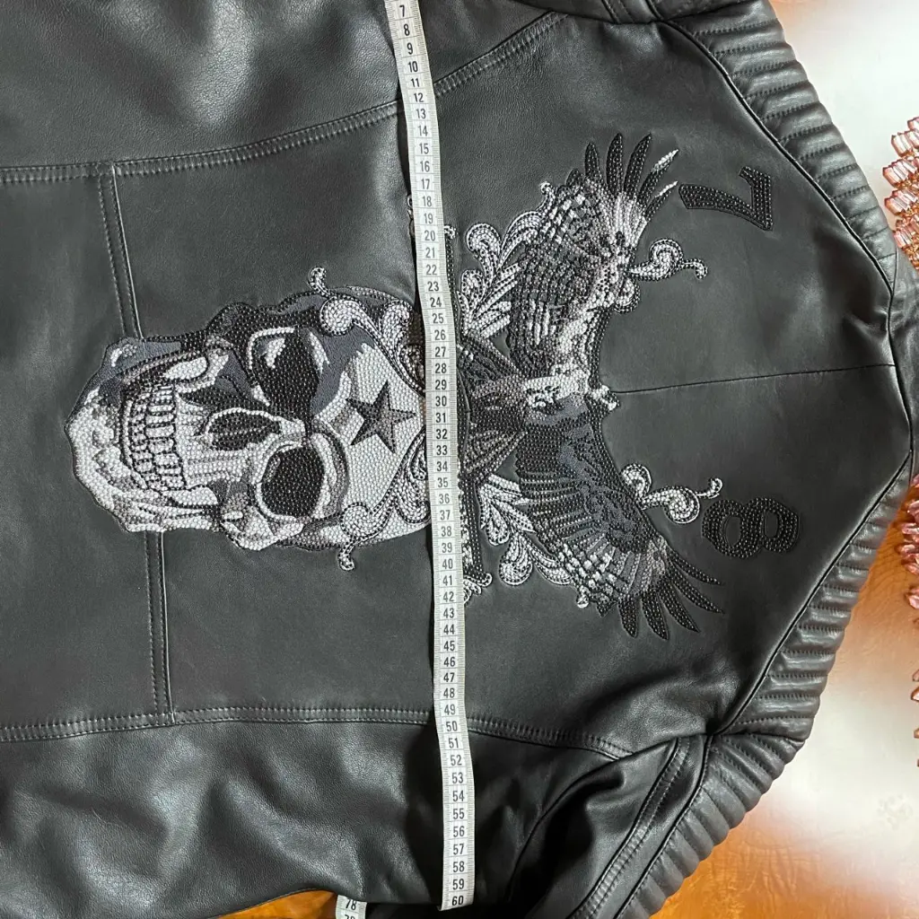 Чёрная мужская куртка Philipp Plein, 100% кожа ягнёнка, размер XXL( слегка маломерит), серебристая массивная фурнитура, узнаваемый дизайн на спине. Состояние отличное.