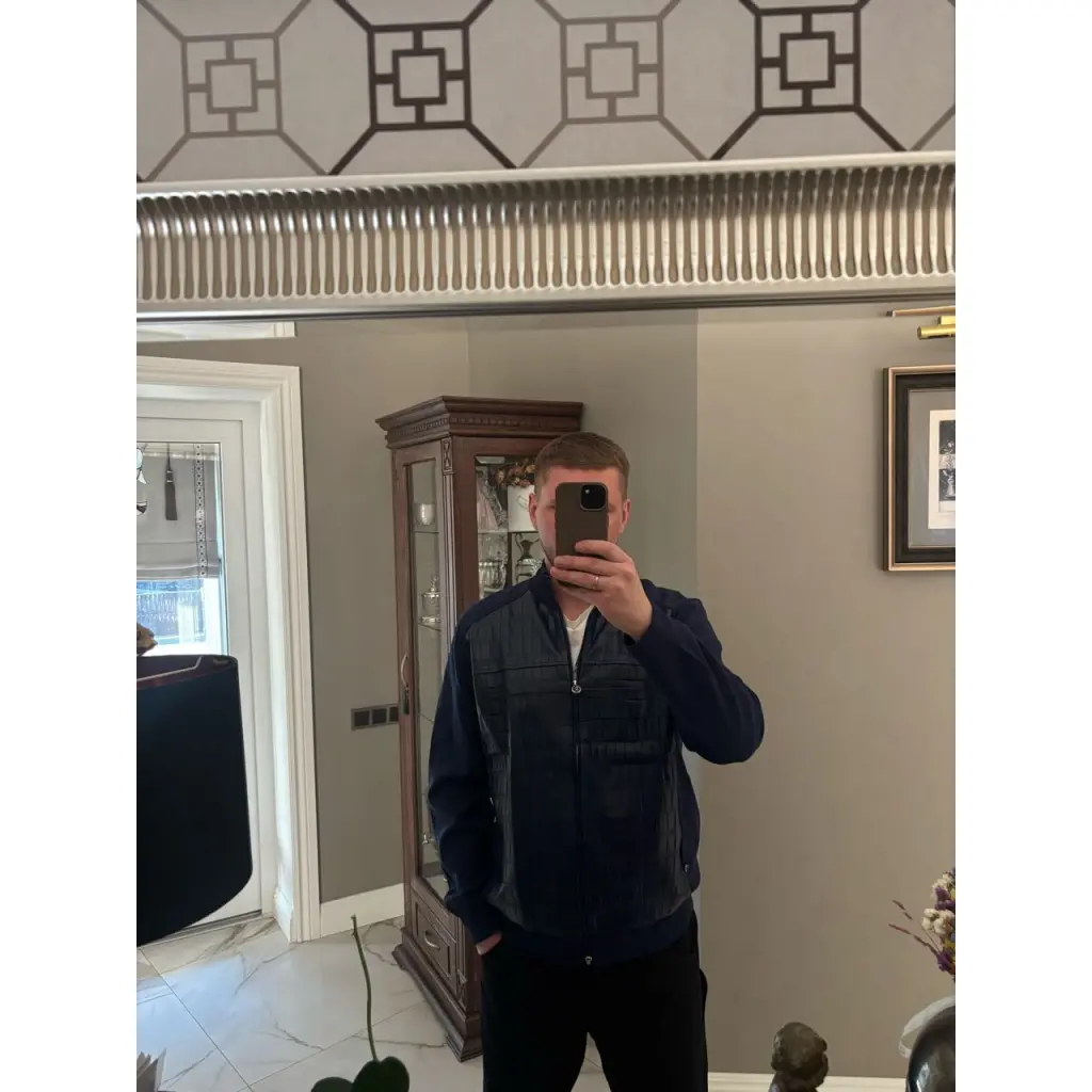 трикотажная куртка-блузон из сочетания шелка и хлопка, украшенная эксклюзивными вставками из кожи крокодила. Модель классического силуэта представлена в изысканном воплощении с фирменными деталями — логотипом бренда и фурнитурой с гальваническим покрытием, что придает ей современную привлекательность.