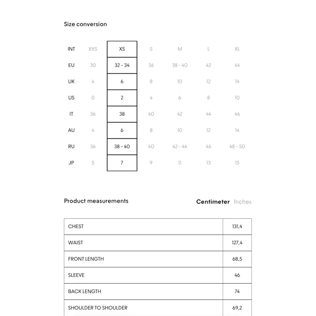 INT XXS/XS/S/L