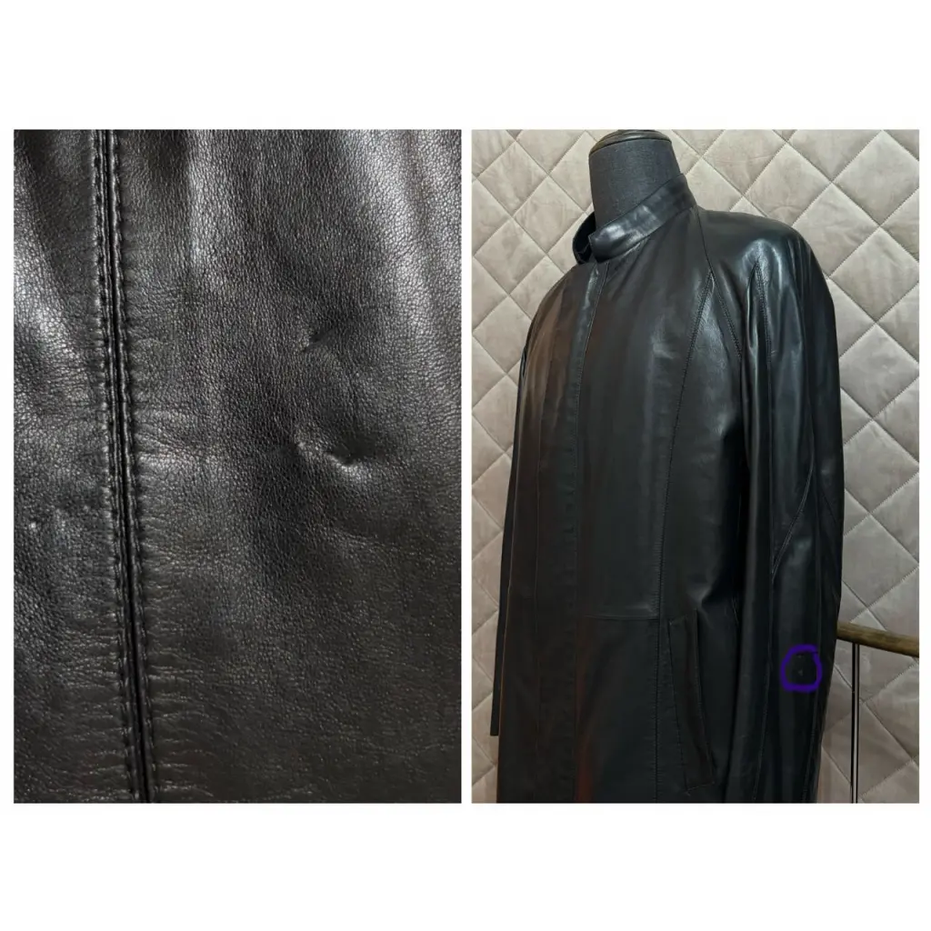 на рукаве была зажата кожа дверью (не порвано, но следы остались). при желании этот нюанс можно устранить в ателье. На фото обведен на рукаве