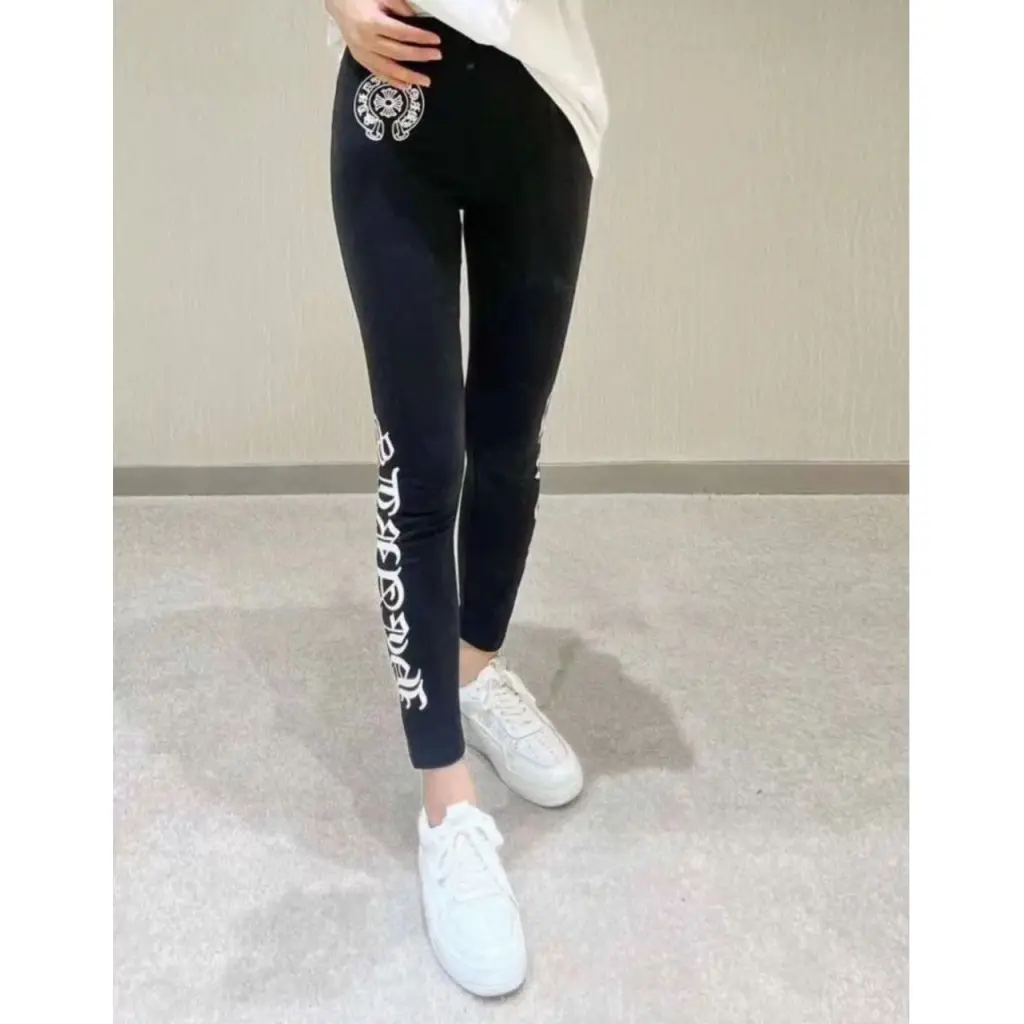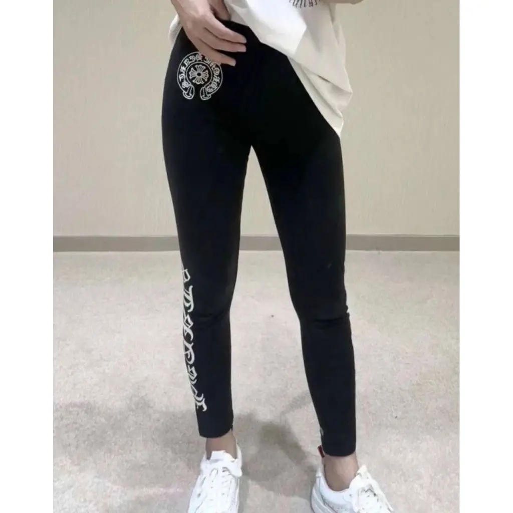 CHROME HEARTS Черные хлопко-эластановые леггинсы и велосипедки