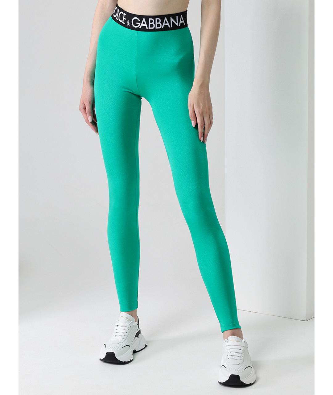 -Зеленые спортивные леггинсы из глянцевого джерси от DOLCE&GABBANA.