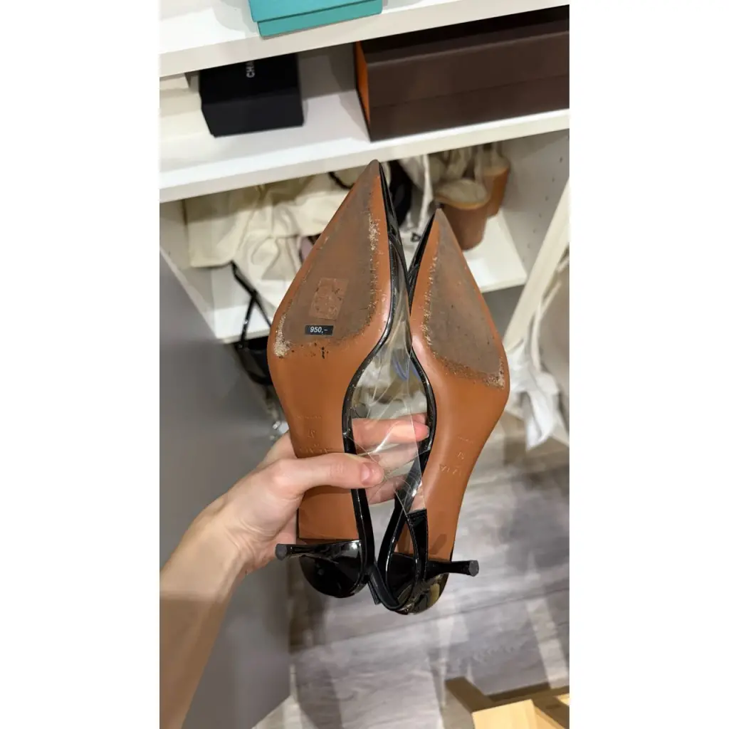 ALAIA Черные лодочки на низком каблуке из лакированной кожи