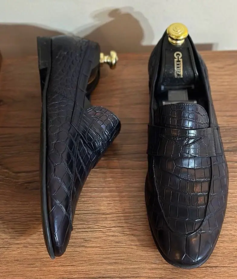Уникальность и эксклюзивность: В природе не существует двух одинаковых крокодилов. Узор каждой шкуры индивидуален, что делает вашу пару обуви по-настоящему единственной в мире.