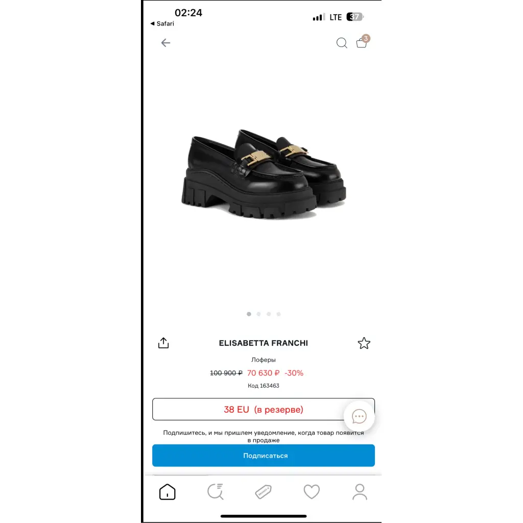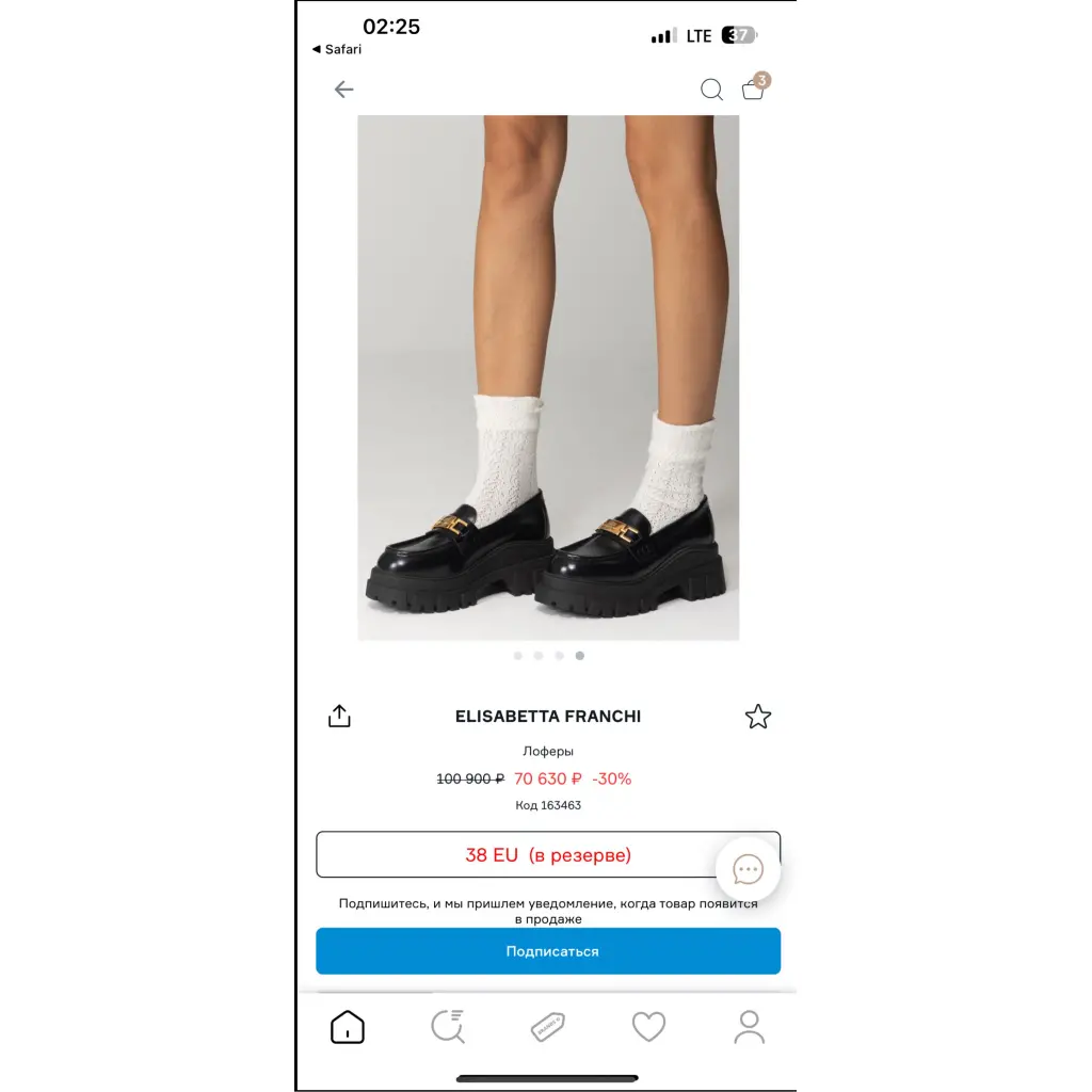 Лоферы Elisabetta Franchi оригинал Шикарные 😍 Круто смотрятся с платьями,брюками 😍 Размер : 36 Носила мало и бережно,отличное состояние Бутик : 70.000руб.