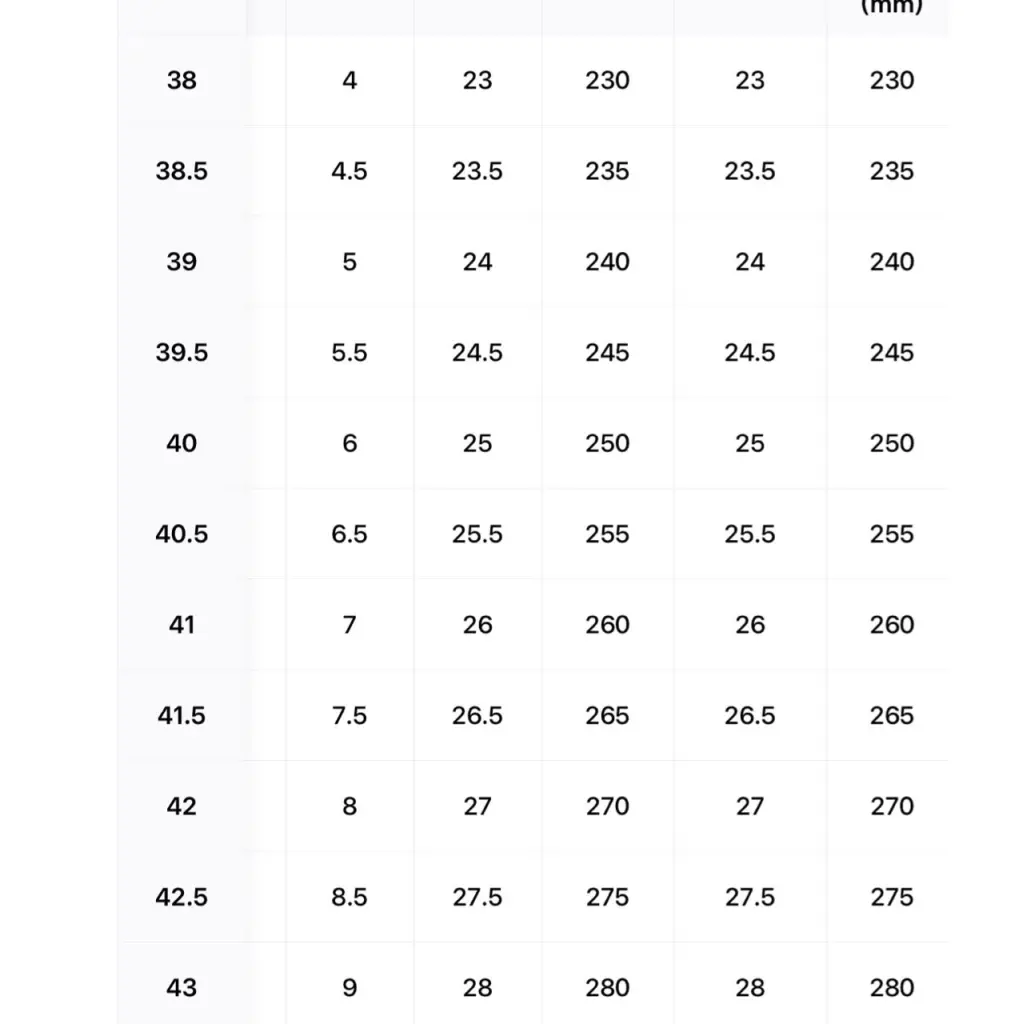 EU 38 39 39,5 40 40,5 41 41,5 42 42,5 43 43,5 44 44,5 45 45,5 46 46,5 47 47,5 48 48,5 49 50 Таблица размеров