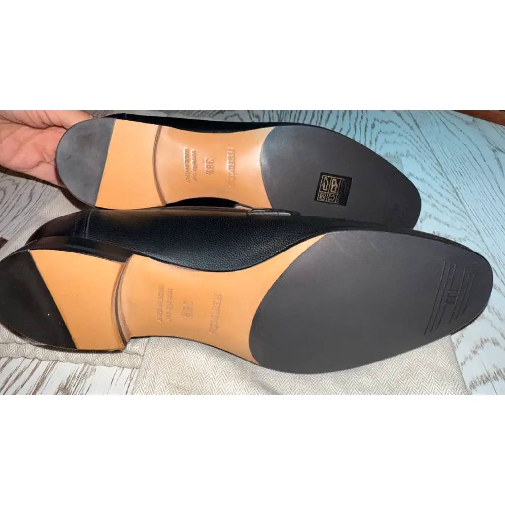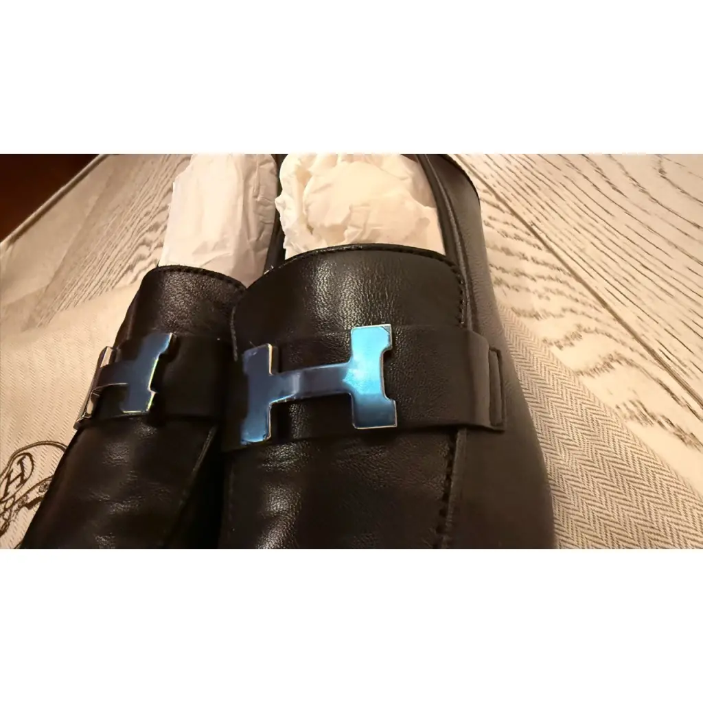 HERMES Черные кожаные лоферы