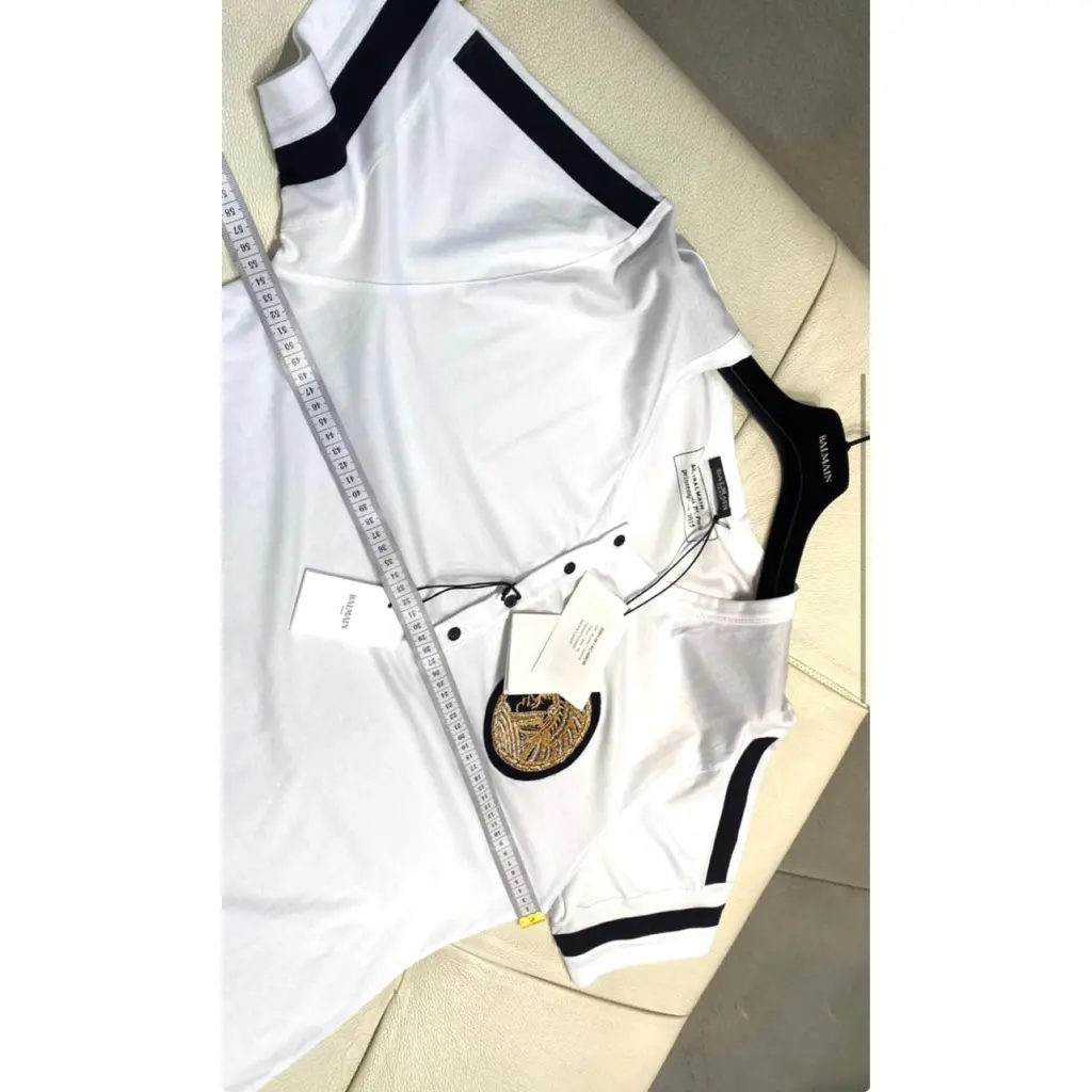Крутая майка от BALMAIN 💣. Новая с бирками. Оверсайз Белая с черными деталями и нашивкой вышитой металлизированной нитью . Шикарный 🎁 Оч круто смотрится🔥. Стоила 57.500.