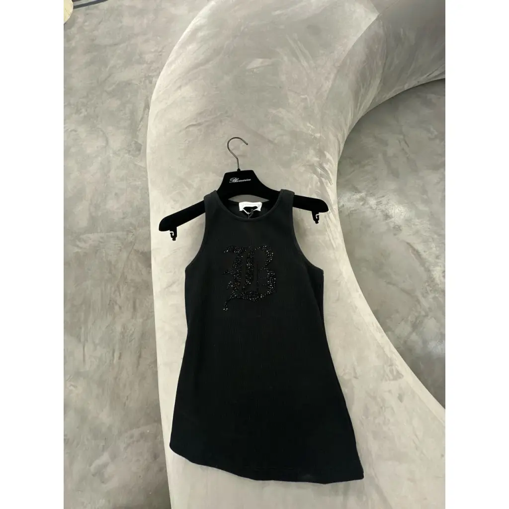 Топ из эластичного хлопка в тонкий рубчик. Модель полуприлегающего кроя с круглым вырезом горловины, спереди украшена логотипом бренда в виде аппликации из страз. Страна производства: Италия Страна бренда: Италия Состав: 95% Хлопок, 5% Эластан