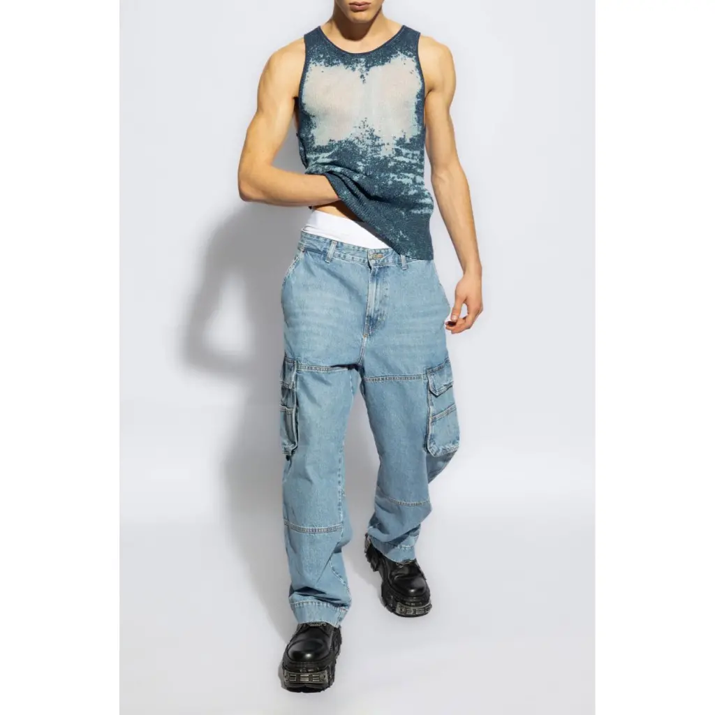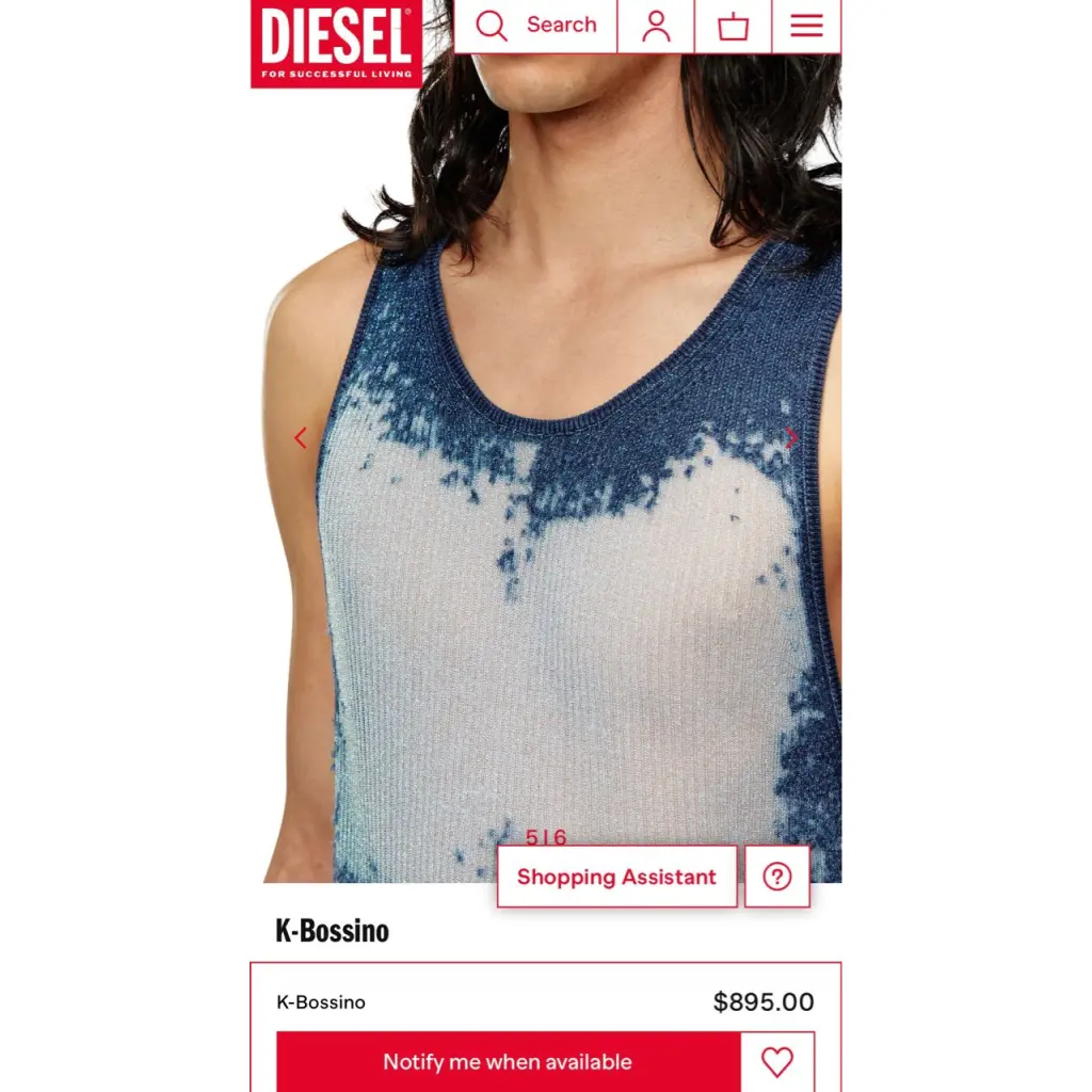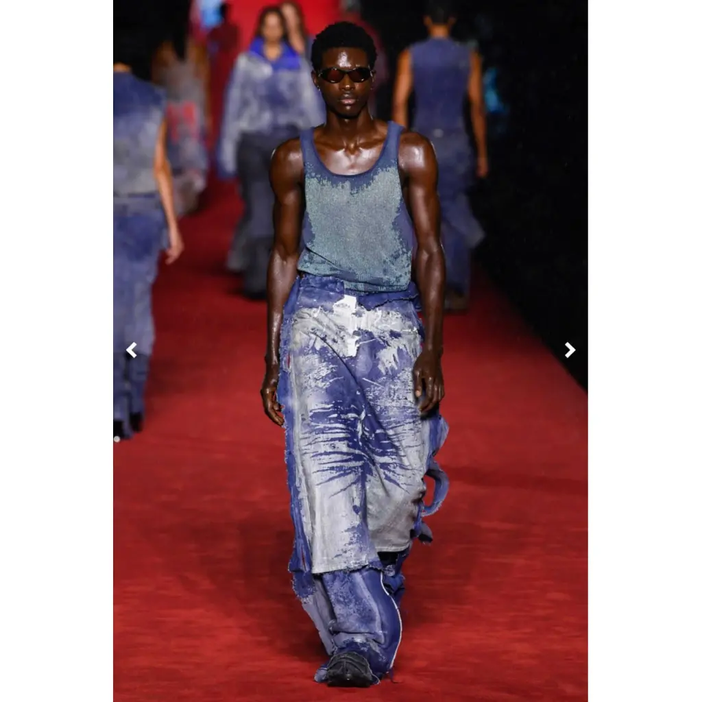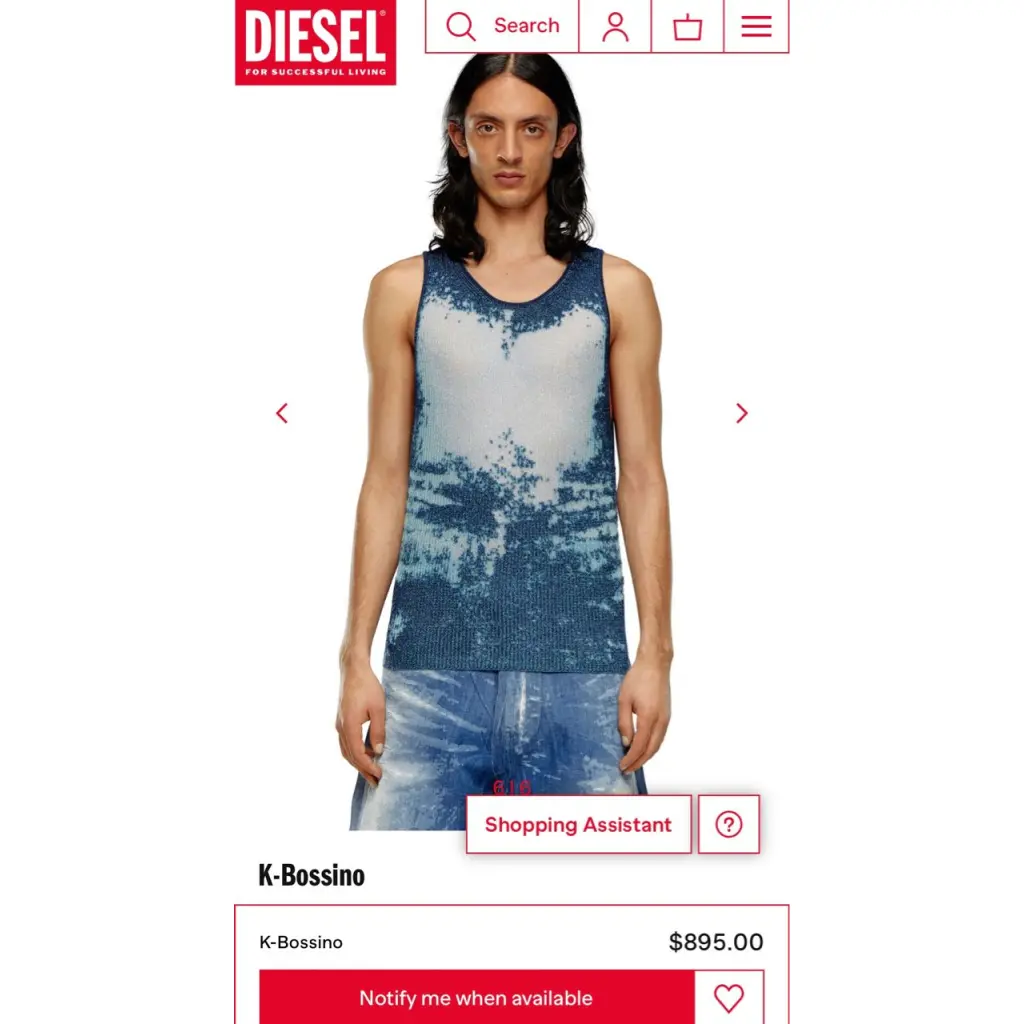 Эксклюзивная вещь Spring '24 Runway Show, эта мужская майка regular fit посадки изготовлена из мерцающего ребристого трикотажа, усыпанного металлической пряжей. Стирка цвета индиго отдает дань уважения джинсовой ткани, в то время как devoré бессистемно разрушает трикотаж до просвязки. Эффект - захватывающий, trompe l'oeil мокрый взгляд, который отражает подрывную этику Diesel.